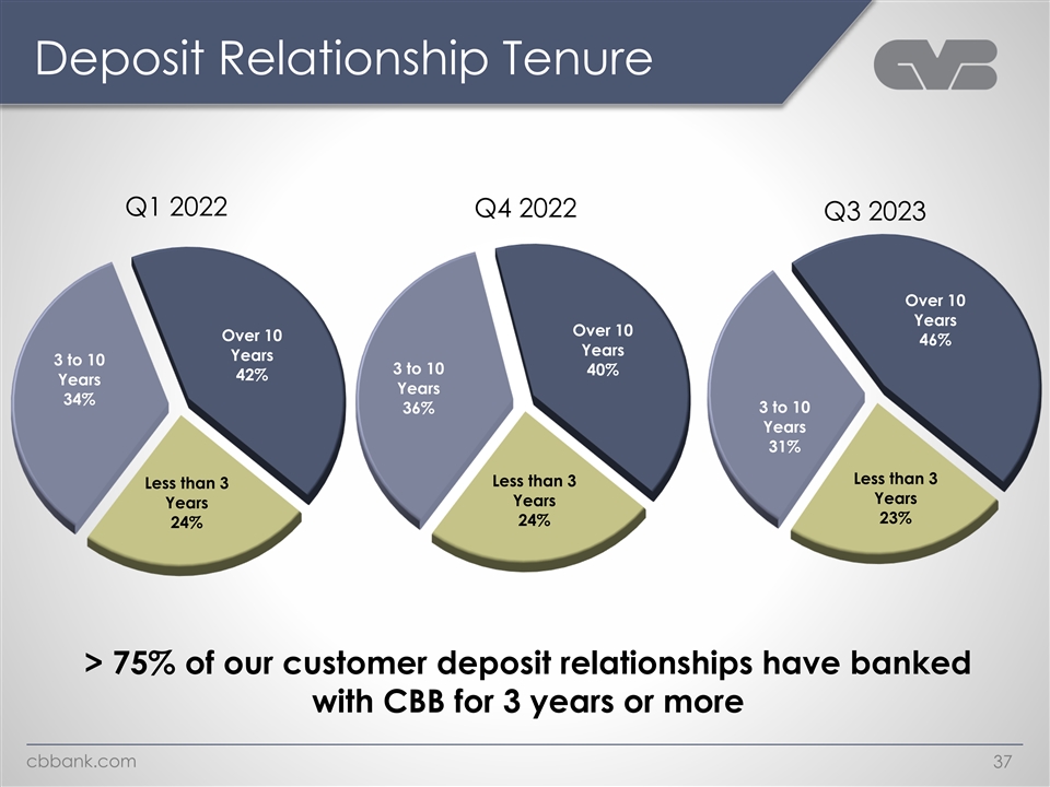 Business vs Consumer Deposits Q1 2022 Q3 2023 Non- Non- Analyzed Analyzed Business Business Accounts Consumer Accounts Consumer 36% 35% 25% 25% Analyzed Analyzed Business Business Accounts Accounts 39% 40% cbbank.com 36