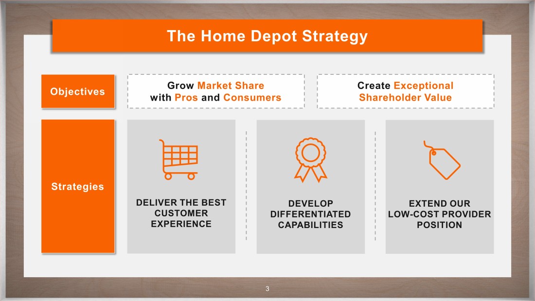 CONFIDENTIAL 3 The Home Depot Strategy Objectives Strategies Grow Market Share with Pros and Consumers Create Exceptional Shareholder Value DELIVER THE BEST CUSTOMER EXPERIENCE DEVELOP DIFFERENTIATED CAPABILITIES EXTEND OUR LOW - COST PROVIDER POSITION