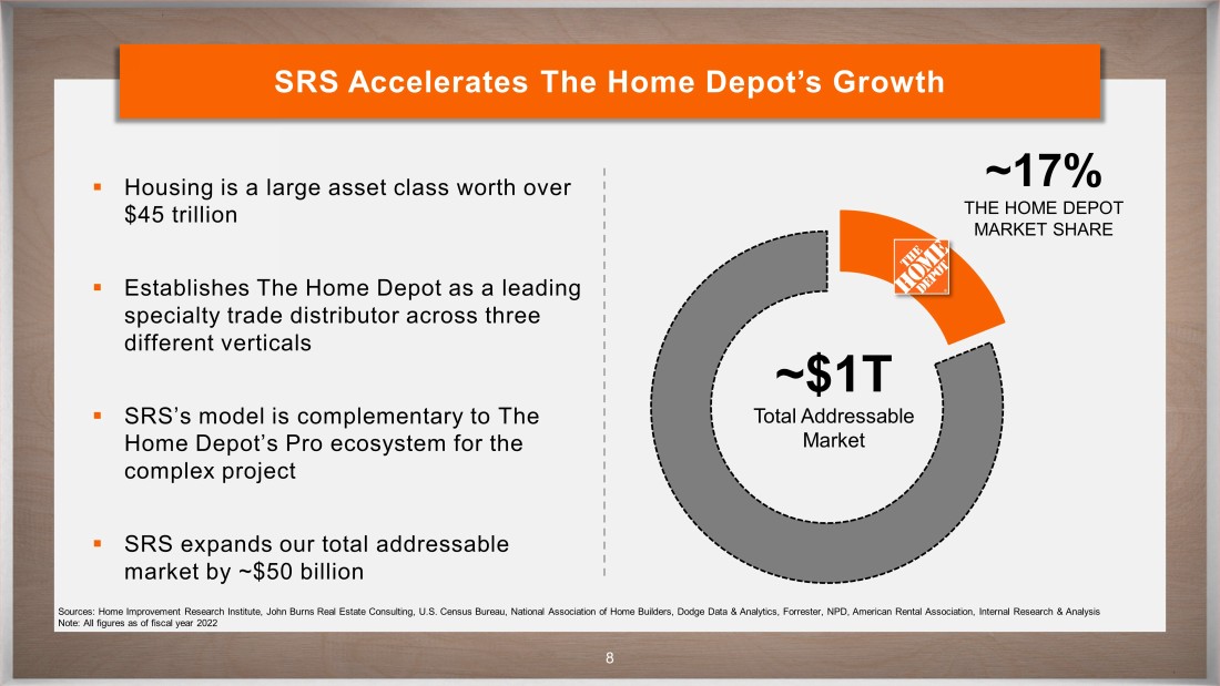 CONFIDENTIAL 7 Experienced Leadership Team to Support Continued Growth and Value Creation with The Home Depot President & Chief Executive Officer Chief Financial Officer Chief Human Resource Officer Chief Digital Officer Chief Supply Chain Officer President, Building Products President, Heritage Landscape Supply Group President, Heritage Landscape Supply Group Dan Tinker Combined 170+ years of industry experience across SRS’s executive leadership team Ryan Nelson Willis Weirich Rajeev Rai Carrie David Kent Gardner Chris McMurrough Matt McDermott