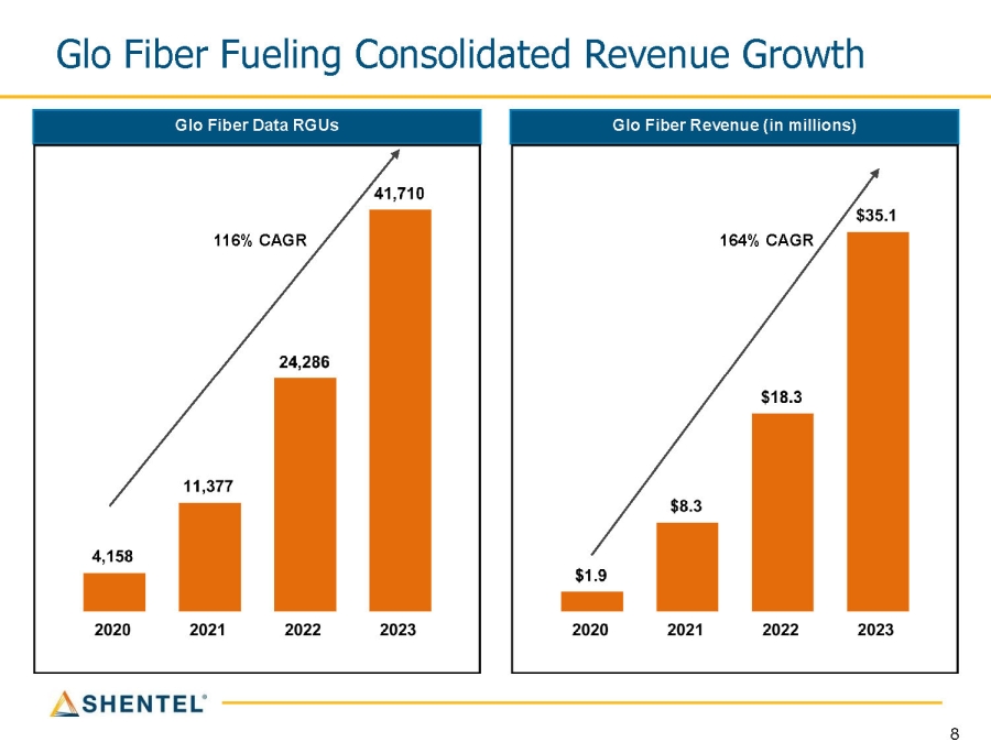 7 Consolidated Highlights - Full Year Results Adjusted EBITDA (in millions) Revenue (in millions) Consolidated revenue includes elimination of intercompany activity. 9% CAGR 18% CAGR