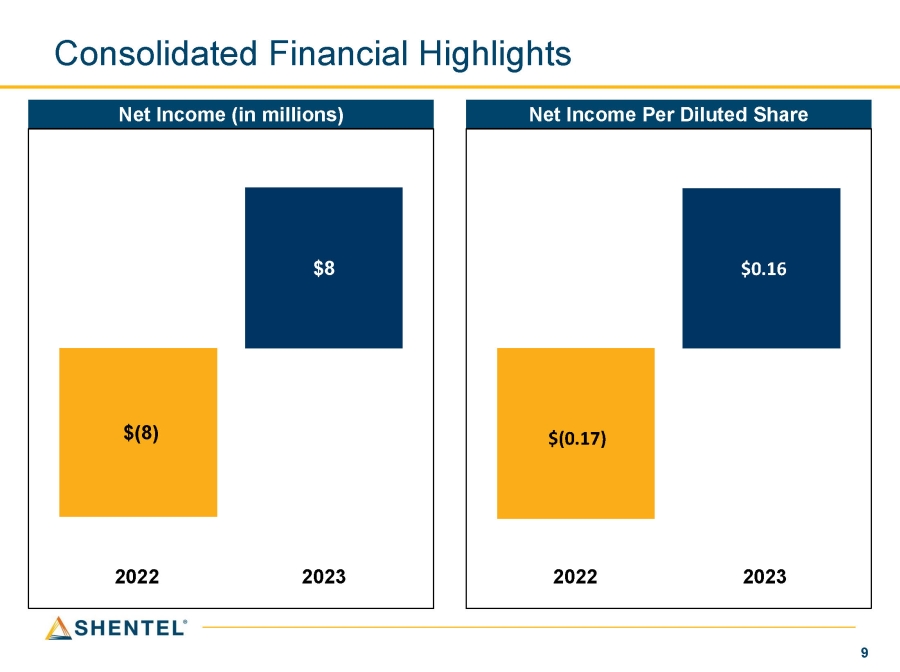 Consolidated Financial Highlights Net Income Per Diluted Share Net Income (in millions) $(8) $8 $(0.17) $0.16 2022 9 2022 2023 2023