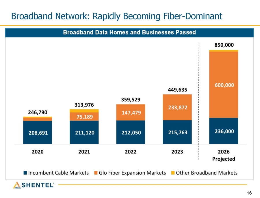 Broadband Network: Rapidly Becoming Fiber - Dominant Broadband Data Homes and Businesses Passed 16