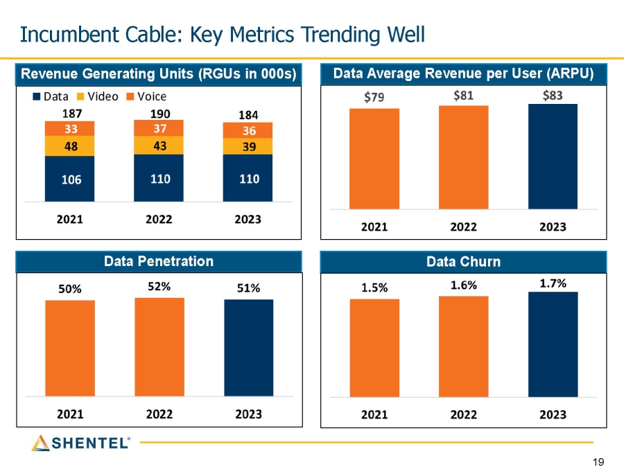 Incumbent Cable: Key Metrics Trending Well Data Churn Data Average Revenue per User (ARPU) Revenue Generating Units (RGUs in 000s) Data Penetration 19