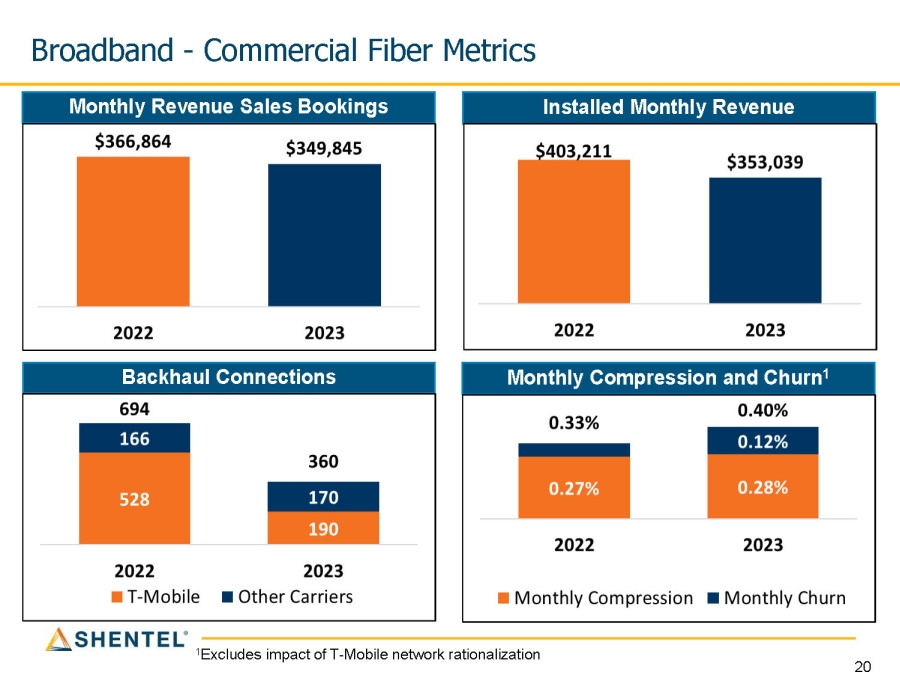 Broadband - Commercial Fiber Metrics Monthly Compression and Churn 1 Installed Monthly Revenue Monthly Revenue Sales Bookings Backhaul Connections 1 Excludes impact of T - Mobile network rationalization 20