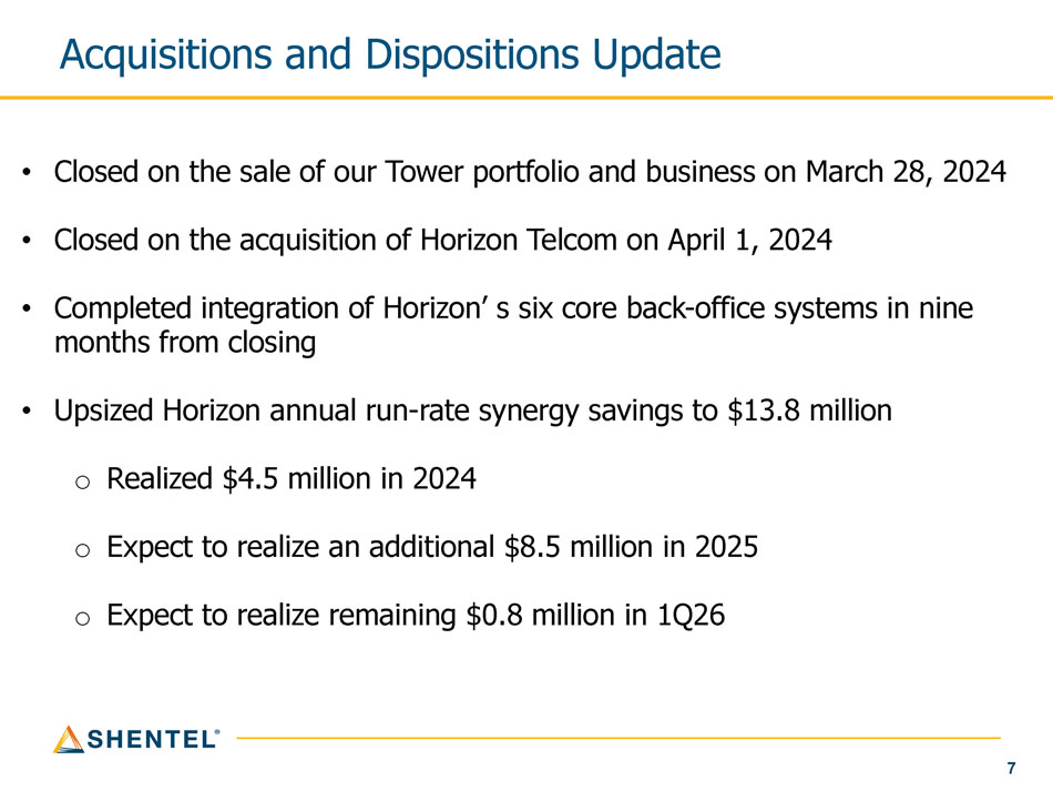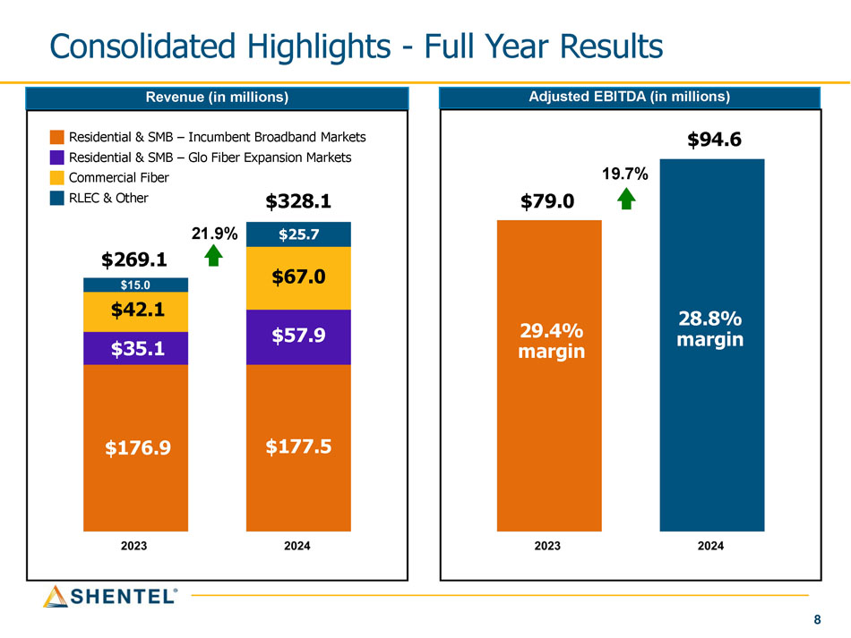 7 Acquisitions and Dispositions Update • Closed on the sale of our Tower portfolio and business on March 28, 2024 • Closed on the acquisition of Horizon Telcom on April 1, 2024 • Completed integration of Horizon’ s six core back - office systems in nine months from closing • Upsized Horizon annual run - rate synergy savings to $13.8 million o Realized $4.5 million in 2024 o Expect to realize an additional $8.5 million in 2025 o Expect to realize remaining $0.8 million in 1Q26
