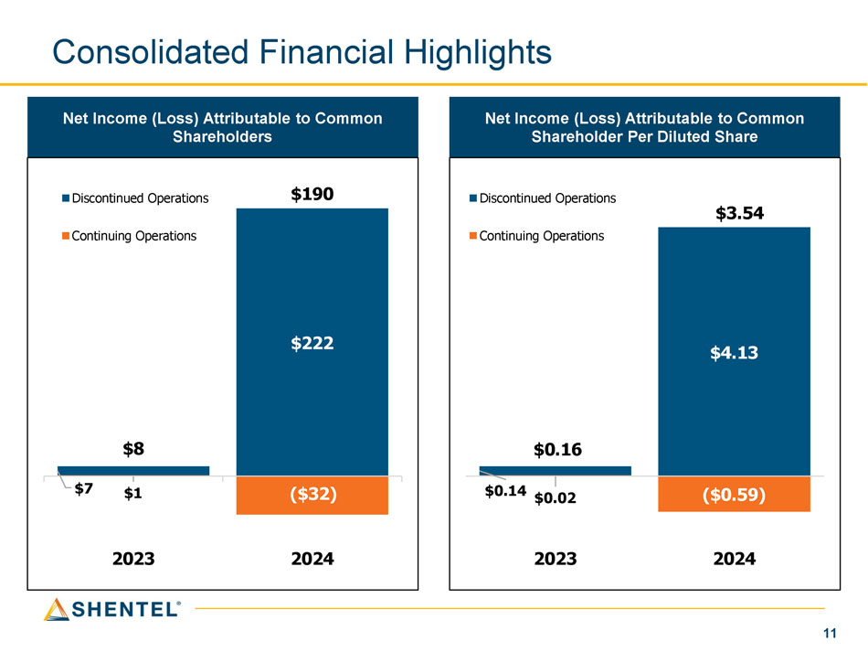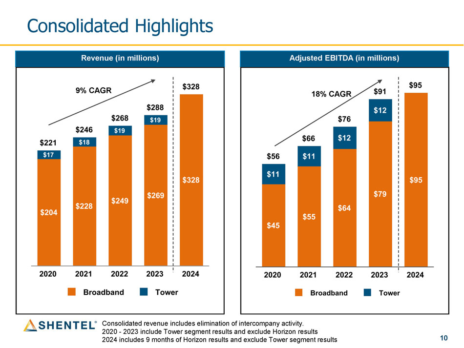 10 Consolidated Highlights Adjusted EBITDA (in millions) Revenue (in millions) 9% CAGR 18% CAGR Consolidated revenue includes elimination of intercompany activity. 2020 - 2023 include Tower segment results and exclude Horizon results 2024 includes 9 months of Horizon results and exclude Tower segment results