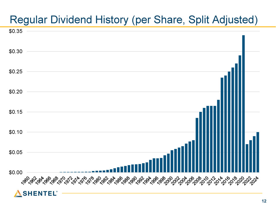 12 Regular Dividend History (per Share, Split Adjusted) $0.35 $0.30 $0.25 $0.20 $0.15 $0.10 $0.05 $0.00