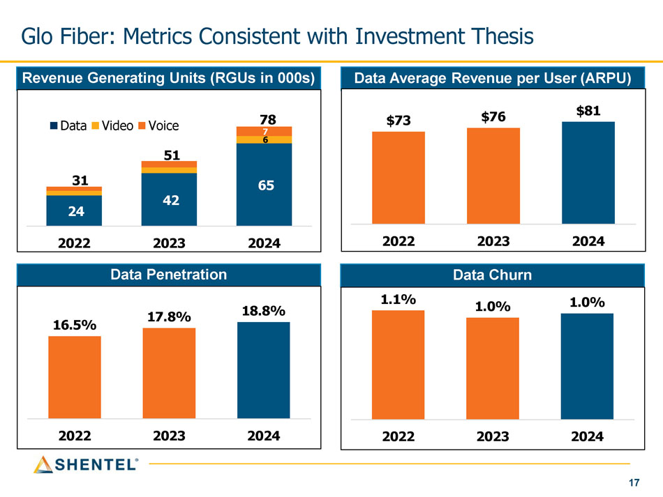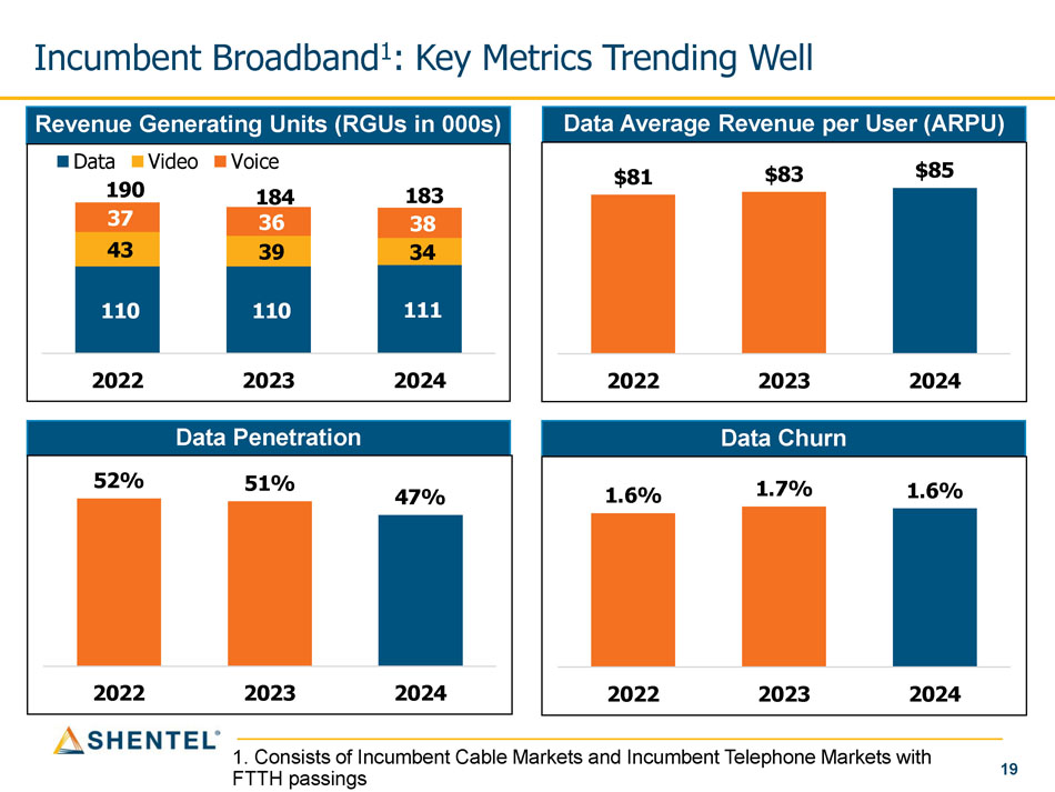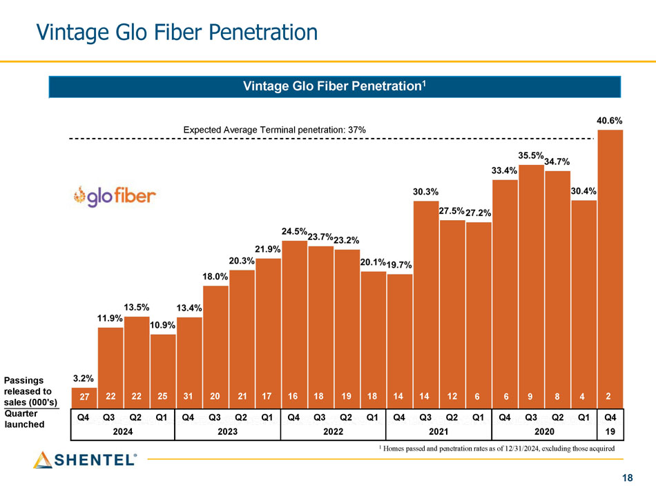 Vintage Glo Fiber Penetration Vintage Glo Fiber Penetration 1 launched Expected Average Terminal penetration: 37% 6 9 8 4 2 Passings released to sales (000's) Quarter Q4 Q1 Q2 Q3 Q4 Q1 Q2 Q3 Q4 Q1 Q2 Q3 Q4 Q1 Q2 Q3 Q4 Q1 Q2 Q3 Q4 19 2020 2021 2022 2023 2024 22 22 25 31 20 21 17 16 18 19 18 14 14 12 6 27 1 Homes passed and penetration rates as of 12/31/2024, excluding those acquired 18
