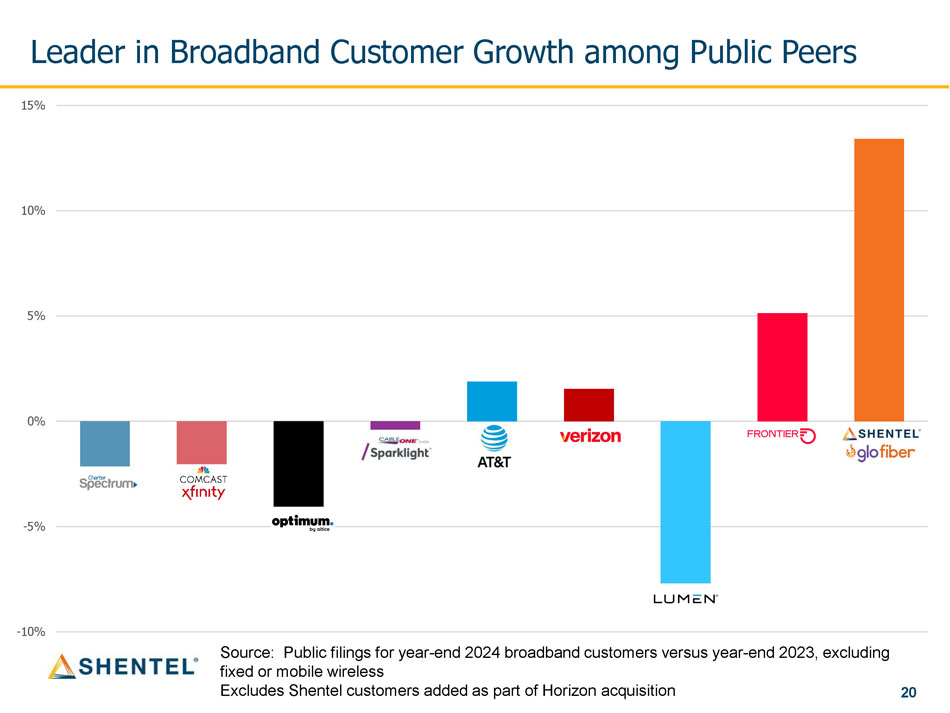 20 - 10% - 5% 0% 5% 10% 15% Source: Public filings for year - end 2024 broadband customers versus year - end 2023, excluding fixed or mobile wireless Excludes Shentel customers added as part of Horizon acquisition Leader in Broadband Customer Growth among Public Peers