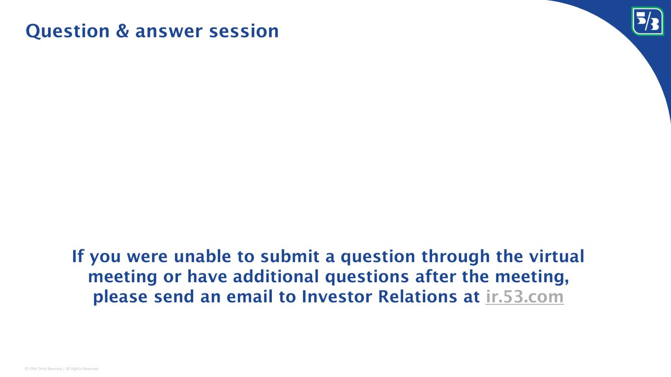 © Fifth Third Bancorp | All Rights Reserved If you were unable to submit a question through the virtual meeting or have additional questions after the meeting, please send an email to Investor Relations at ir.53.com Question & answer session