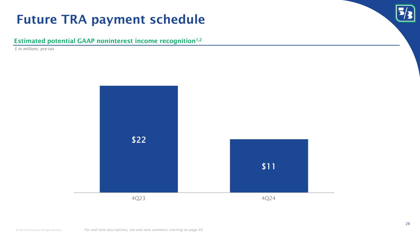 © Fifth Third Bancorp | All Rights Reserved Estimated potential GAAP noninterest income recognition 1,2 $ in millions; pre-tax For end note descriptions, see end note summary starting on page 40 Future TRA payment schedule 26