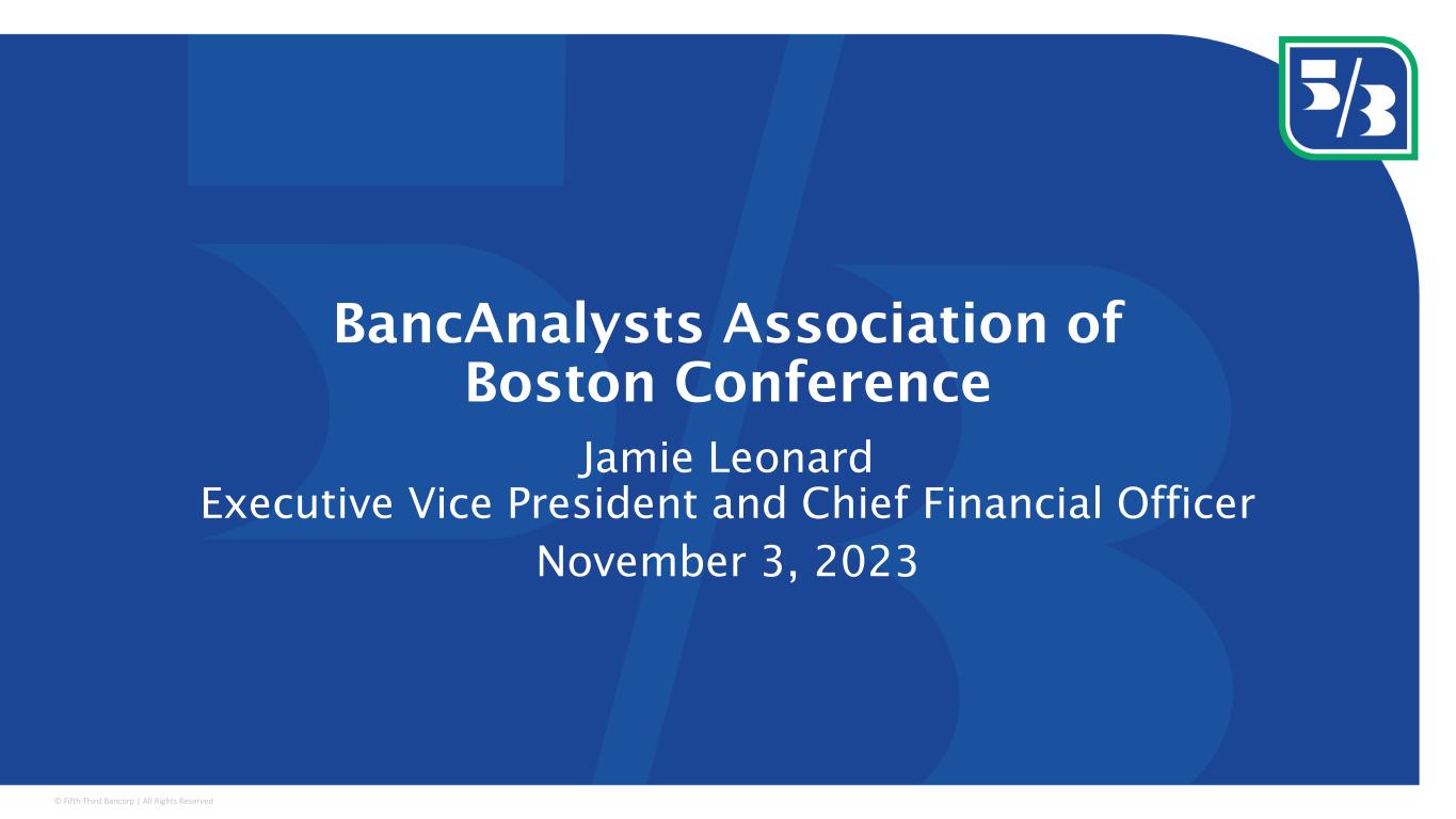 © Fifth Third Bancorp | All Rights Reserved © Fifth Third Bancorp | All Rights Reserved BancAnalysts Association of Boston Conference Jamie Leonard Executive Vice President and Chief Financial Officer November 3, 2023