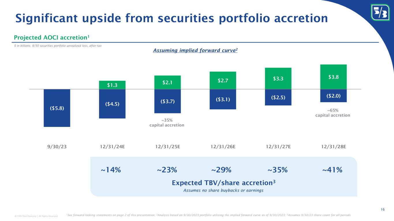 © Fifth Third Bancorp | All Rights Reserved ($5.8) ($4.5) ($3.7) ($3.1) ($2.5) ($2.0) $1.3 $2.1 $2.7 $3.3 $3.8 9/30/23 12/31/24E 12/31/25E 12/31/26E 12/31/27E 12/31/28E Significant upside from securities portfolio accretion 16 Projected AOCI accretion 1 $ in billions; 9/30 securities portfolio unrealized loss, after-tax 1 See forward-looking statements on page 2 of this presentation; 2 Analysis based on 9/30/2023 portfolio utilizing the implied forward curve as of 9/30/2023; 3 Assumes 9/30/23 share count for all periods Assuming implied forward curve 2 ~35% capital accretion ~65% capital accretion ~14% ~23% ~29% ~35% ~41% Expected TBV/share accretion 3 Assumes no share buybacks or earnings