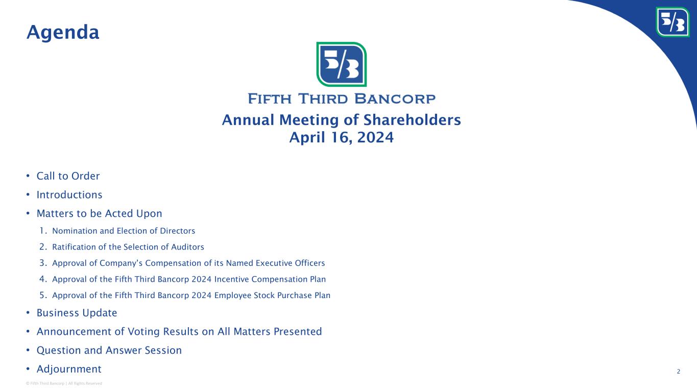 © Fifth Third Bancorp | All Rights Reserved © Fifth Third Bancorp | All Rights Reserved Annual Meeting of Shareholders April 16, 2024
