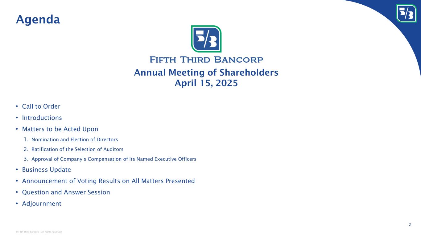 © Fifth Third Bancorp | All Rights Reserved © Fifth Third Bancorp | All Rights Reserved Annual Meeting of Shareholders April 15, 2025
