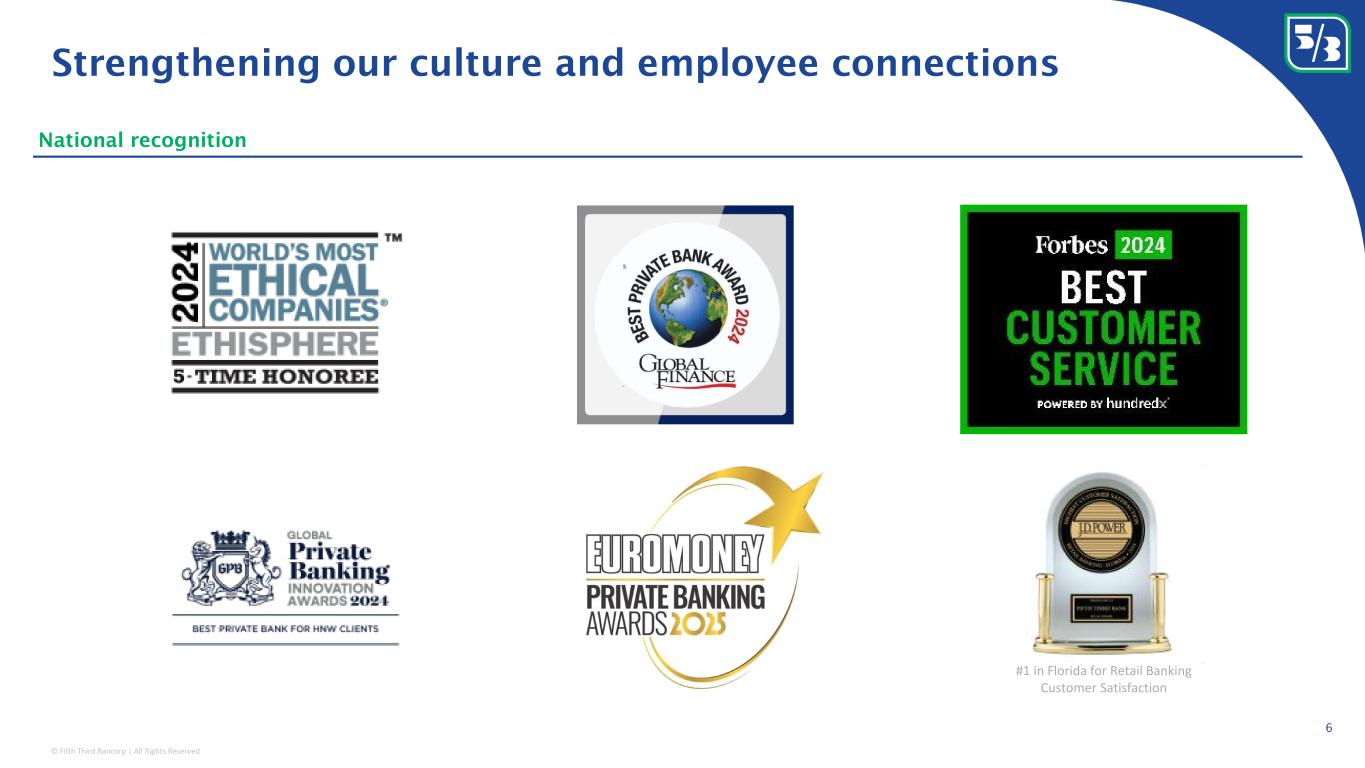 © Fifth Third Bancorp | All Rights Reserved Strengthening our culture and employee connections National recognition 6 #1 in Florida for Retail Banking Customer Satisfaction