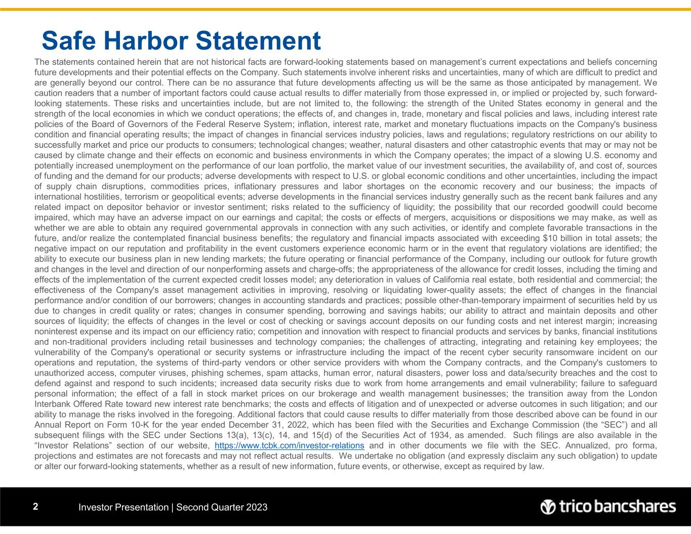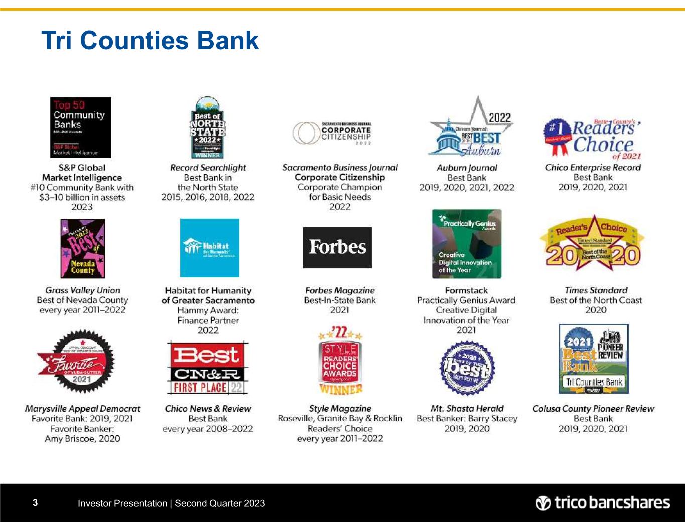 Tri Counties Bank Investor Presentation | Second Quarter 20233