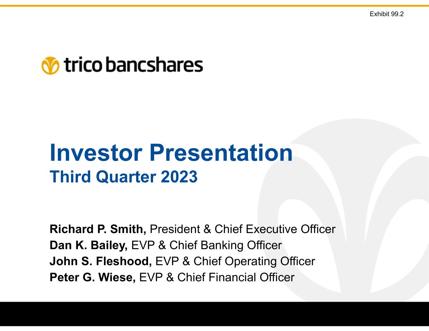 Investor Presentation Third Quarter 2023 Richard P. Smith, President & Chief Executive Officer Dan K. Bailey, EVP & Chief Banking Officer John S. Fleshood, EVP & Chief Operating Officer Peter G. Wiese, EVP & Chief Financial Officer Exhibit 99.2