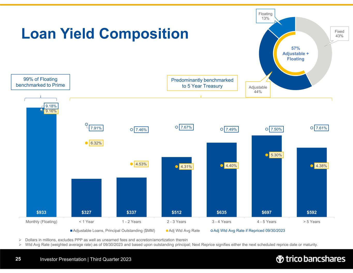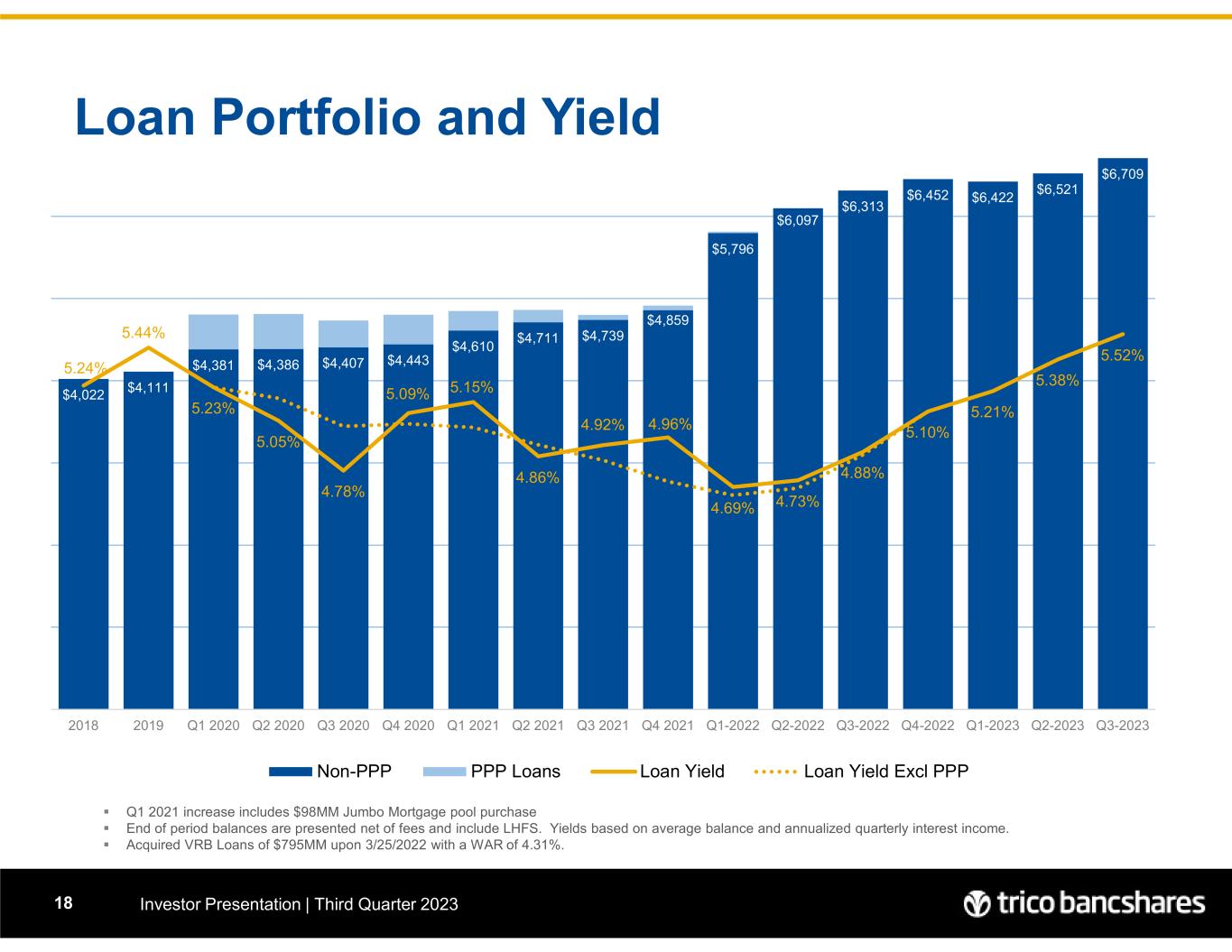Loan Portfolio and Yield Investor Presentation | Third Quarter 202318  Q1 2021 increase includes $98MM Jumbo Mortgage pool purchase  End of period balances are presented net of fees and include LHFS. Yields based on average balance and annualized quarterly interest income.  Acquired VRB Loans of $795MM upon 3/25/2022 with a WAR of 4.31%. $4,022 $4,111 $4,381 $4,386 $4,407 $4,443 $4,610 $4,711 $4,739 $4,859 $5,796 $6,097 $6,313 $6,452 $6,422 $6,521 $6,709 5.24% 5.44% 5.23% 5.05% 4.78% 5.09% 5.15% 4.86% 4.92% 4.96% 4.69% 4.73% 4.88% 5.10% 5.21% 5.38% 5.52% 3.50% 4.50% 5.50% 6.50% $0 $1,000 $2,000 $3,000 $4,000 $5,000 $6,000 2018 2019 Q1 2020 Q2 2020 Q3 2020 Q4 2020 Q1 2021 Q2 2021 Q3 2021 Q4 2021 Q1-2022 Q2-2022 Q3-2022 Q4-2022 Q1-2023 Q2-2023 Q3-2023 Non-PPP PPP Loans Loan Yield Loan Yield Excl PPP
