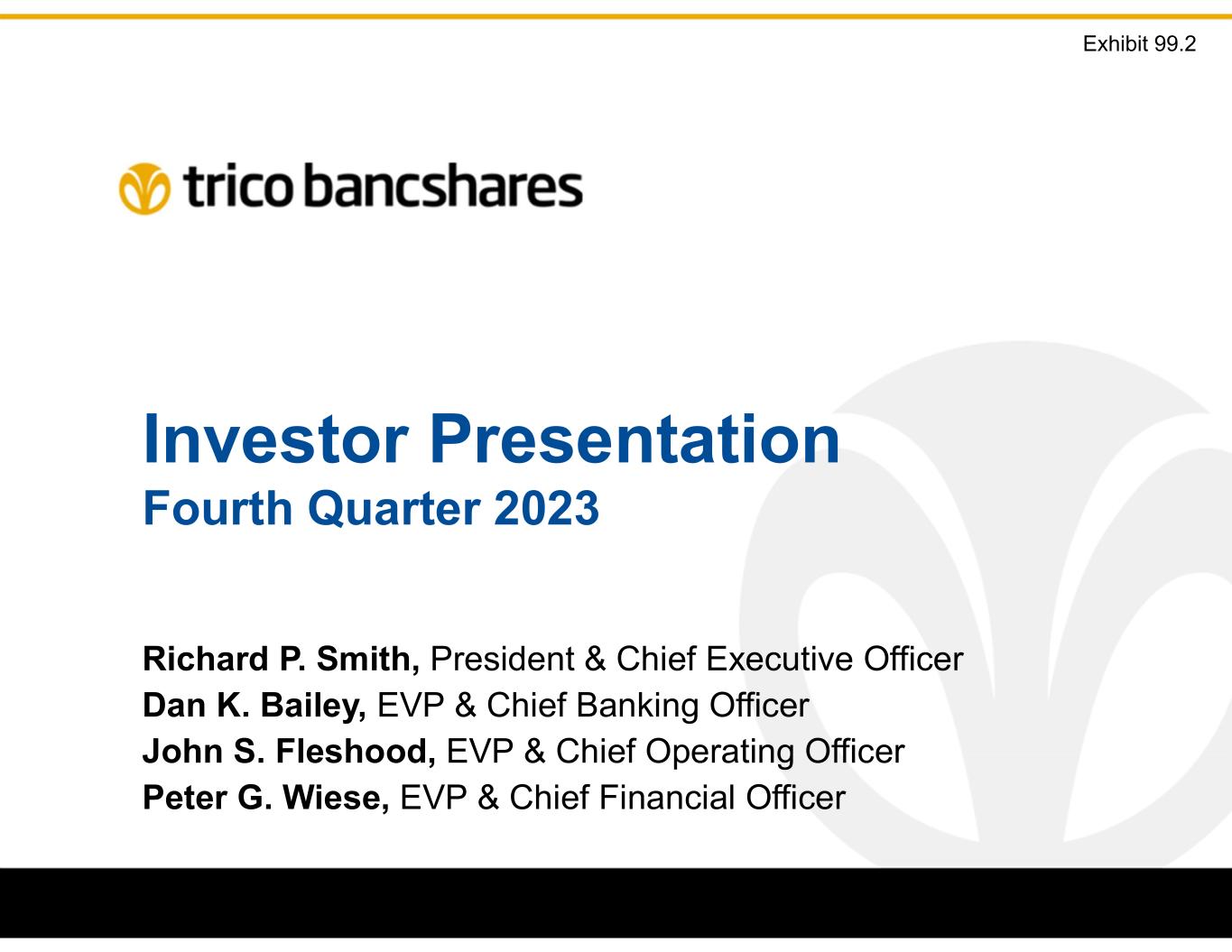 Investor Presentation Fourth Quarter 2023 Richard P. Smith, President & Chief Executive Officer Dan K. Bailey, EVP & Chief Banking Officer John S. Fleshood, EVP & Chief Operating Officer Peter G. Wiese, EVP & Chief Financial Officer Exhibit 99.2