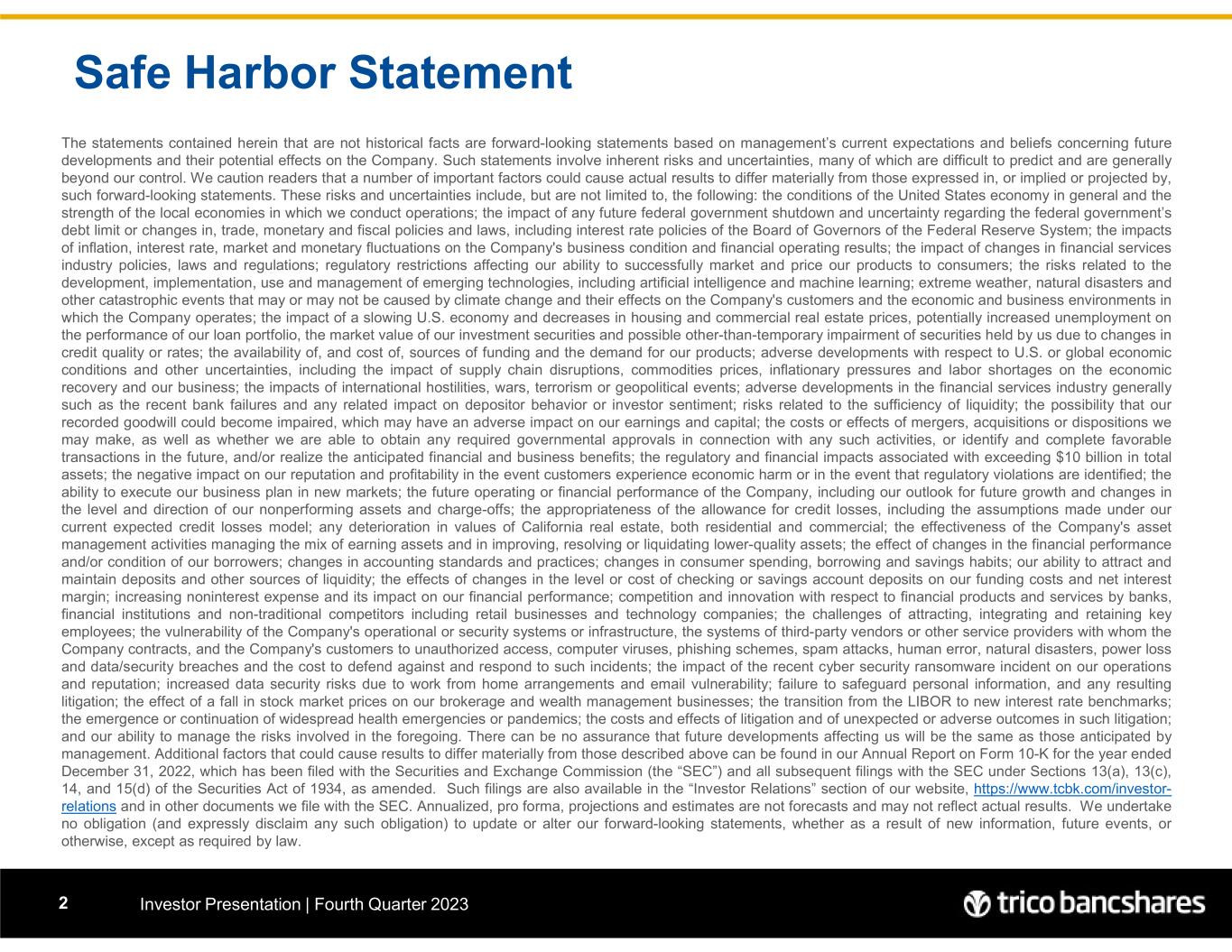 Tri Counties Bank Investor Presentation | Fourth Quarter 20233
