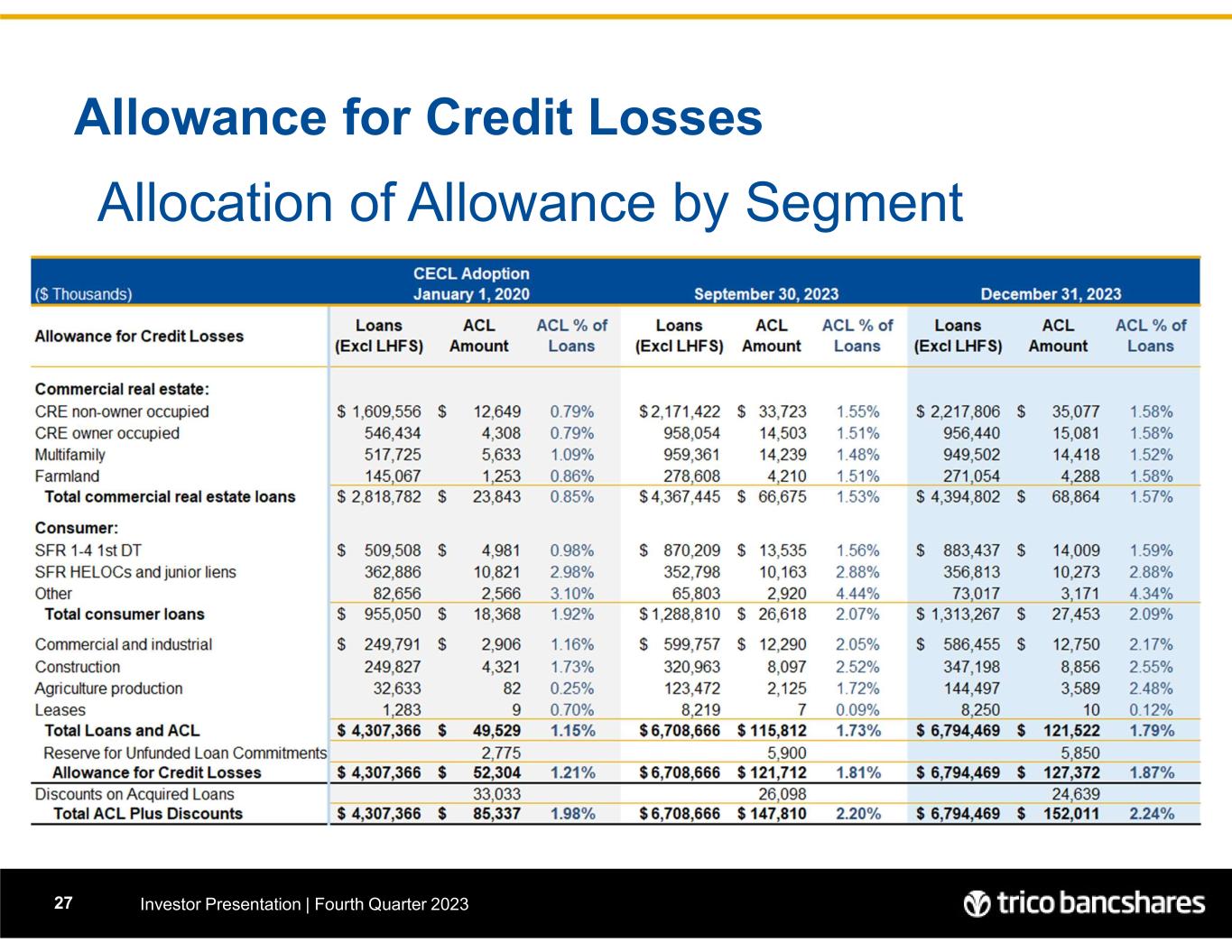 Allowance for Credit Losses Investor Presentation | Fourth Quarter 202327 Allocation of Allowance by Segment