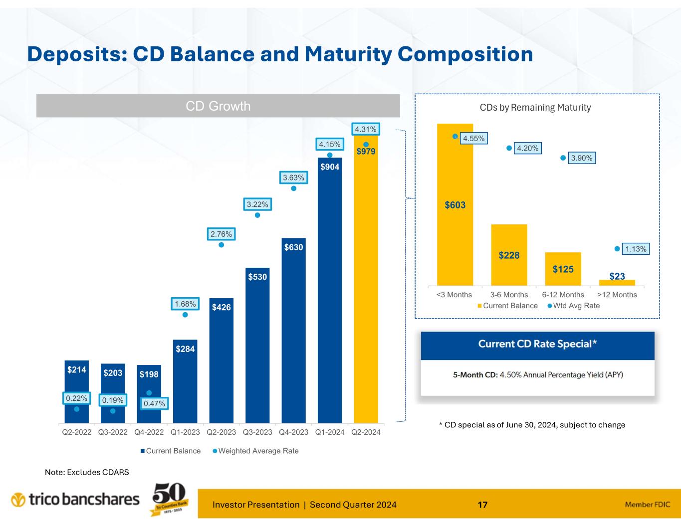 Investor Presentation | Second Quarter 2024 16 # 35,176 # 200,016 476 448 433 429 1,464 1,523 756 403 263 361 Consumer Business Prior Quarter, Total Deposits: Demand & Savings Deposit Mix [1] Excludes time deposits, bank owned operational deposits and public funds. Balance Tier, $ millions [1]Total Demand & Savings ($ millions exterior, count interior) Business $3,250 Consumer $3,306