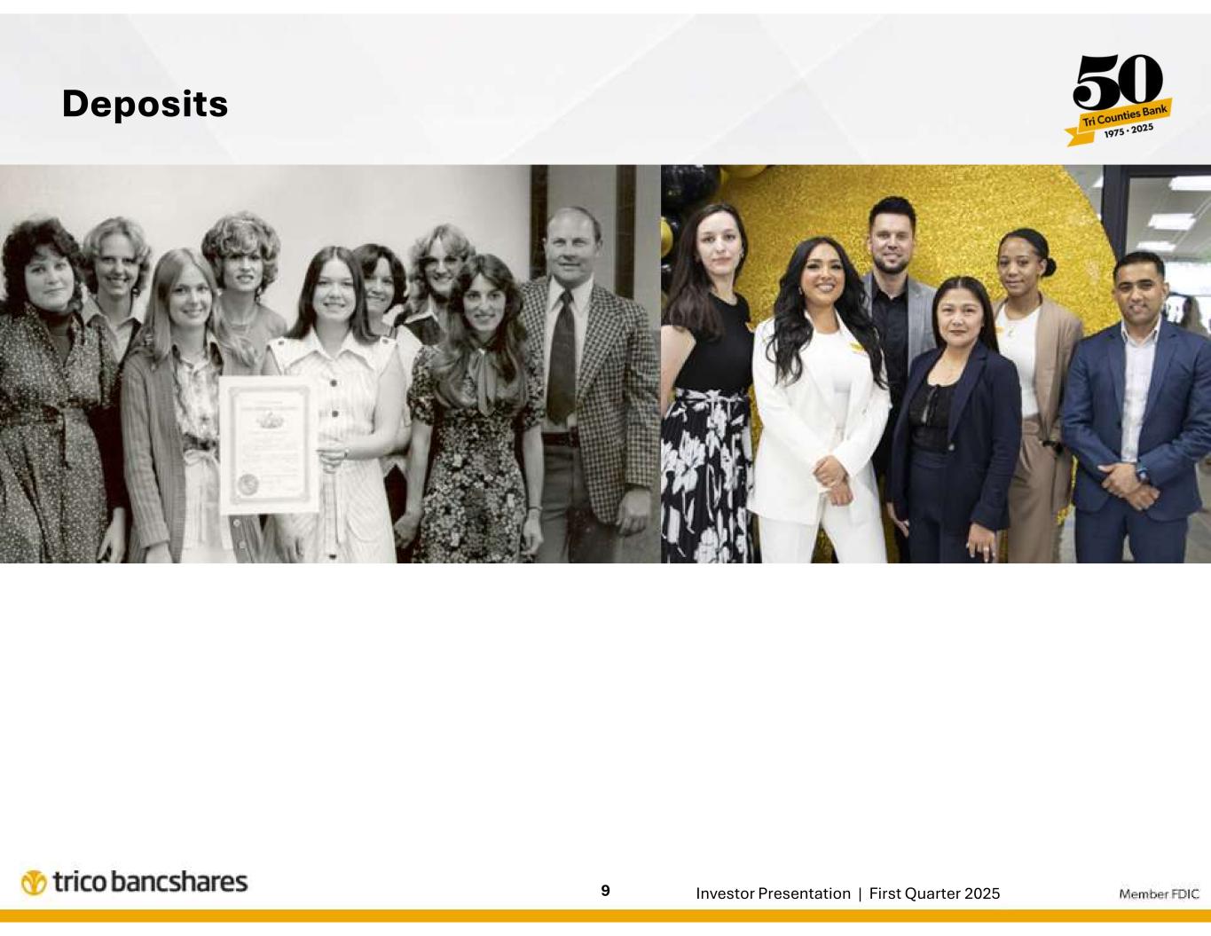 Investor Presentation | First Quarter 20252 Safe Harbor Statement The statements contained herein that are not historical facts are forward-looking statements based on management’s current expectations and beliefs concerning future developments and their potential effects on us. Such statements involve inherent risks and uncertainties, many of which are difficult to predict and are generally beyond our control. We caution readers that a number of important factors could cause actual results to differ materially from those expressed in, or implied or projected by, such forward-looking statements. These risks and uncertainties include, but are not limited to, the following: macroeconomic, geopolitical, and other challenges and uncertainties, including those related to actual or potential policies and actions from the new U.S. administration, such as tariffs, and reciprocal actions by other countries or regions, significant volatility and disruptions in financial markets, a resurgence of inflation, increases in unemployment rates, increases in interest rates and slowing economic growth or recession in the U.S. and other countries or regions; the impact of any future federal government shutdown and uncertainty regarding the federal government’s debt limit; the impact of changes in financial services industry policies, laws and regulations; regulatory restrictions or adverse regulatory findings affecting our ability to successfully market and price our products to consumers; adverse developments in the financial services industry generally such as bank failures and any related impact on depositor behavior or investor sentiment; the impacts of international hostilities, wars, terrorism or geopolitical events; risks related to the sufficiency of liquidity, including our ability to attract and maintain deposits; the risks related to the development, implementation, use and management of emerging technologies, including artificial intelligence and machine learning; extreme weather, natural disasters and other catastrophic events and their effects on our customers and the economic and business environments in which we operate; current and future economic and market conditions of the local economies in which we conduct operations; declines in housing and commercial real estate prices and changes in the financial performance and/or condition of our borrowers; the market value of our investment securities and possible other-than-temporary impairment of securities held by us due to changes in credit quality or rates; the availability of, and cost of, sources of funding and the demand for our products; the possibility that our recorded goodwill could become impaired, which may have an adverse impact on our earnings and capital; the costs or effects of mergers, acquisitions or dispositions we may make, as well as whether we are able to obtain any required governmental approvals in connection with any such activities, or identify and complete favorable transactions in the future, and/or realize the anticipated financial and business benefits; the volatility of the stock market and its impact on our stock price and our ability to conduct acquisitions; the regulatory and financial impacts associated with exceeding $10 billion in total assets; the ability to execute our business plan in new markets; our future operating or financial performance, including our outlook for future growth; changes in the level and direction of our nonperforming assets and charge-offs and the appropriateness of the allowance for credit losses; the effectiveness of us managing the mix of earning assets and in improving, resolving or liquidating lower-quality assets; changes in accounting standards and practices; changes in consumer spending, borrowing and savings habits; the effects of changes in the level or cost of checking or savings account deposits on our funding costs and net interest margin; increasing noninterest expense and its impact on our financial performance; competition and innovation with respect to financial products and services by banks, financial institutions and non-traditional competitors including retail businesses and technology companies; the challenges of attracting, integrating and retaining key employees; the impact of the 2023 cyber security ransomware incident, including the pending litigation, on our operations and reputation; the vulnerability of our operational or security systems or infrastructure, the systems of third-party vendors or other service providers with whom we contract, and our customers to unauthorized access, computer viruses, phishing schemes, spam attacks, human error, natural disasters, power loss and data/security breaches and the cost to defend against and respond to such incidents; increased data security risks due to work from home arrangements and email vulnerability; failure to safeguard personal information, and any resulting litigation; the effect of a fall in stock market prices on our brokerage and wealth management businesses; the emergence or continuation of widespread health emergencies or pandemics; potential judgments, orders, settlements, penalties, fines and reputational damage resulting from pending or future litigation and regulatory investigations, proceedings and enforcement actions; and our ability to manage the risks involved in the foregoing. There can be no assurance that future developments affecting us will be the same as those anticipated by management. Additional factors that could cause results to differ materially from those described above can be found in our filings with the U.S. Securities and Exchange Commission, including without limitation the “Risk Factors” Section of TriCo’s Annual Report on Form 10-K for the year ended December 31, 2024, Such filings are also available in the “Investor Relations” section of our website, https://www.tcbk.com/investor-relations. Annualized, pro forma, projections and estimates are not forecasts 