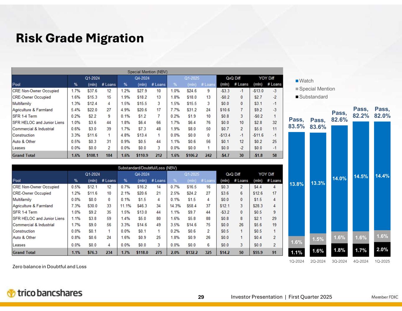 Investor Presentation | First Quarter 202529 Risk Grade Migration Zero balance in Doubtful and Loss 2.0%1.7%1.8%1.6%1.1% 1.6%1.6%1.6%1.5% 1.6% 14.4%14.5%14.0% 13.3%13.8% Pass, 82.0% Pass, 82.2%Pass, 82.6%Pass, 83.6% Pass, 83.5% 0.0% 20.0% 1Q-20254Q-20243Q-20242Q-20241Q-2024 Watch Special Mention Substandard