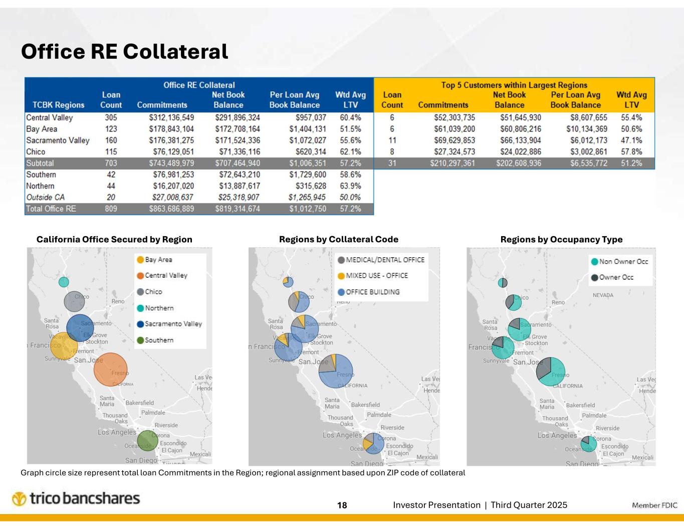 Investor Presentation | Third Quarter 202518 Office RE Collateral Graph circle size represent total loan Commitments in the Region; regional assignment based upon ZIP code of collateral California Office Secured by Region Regions by Collateral Code Regions by Occupancy Type