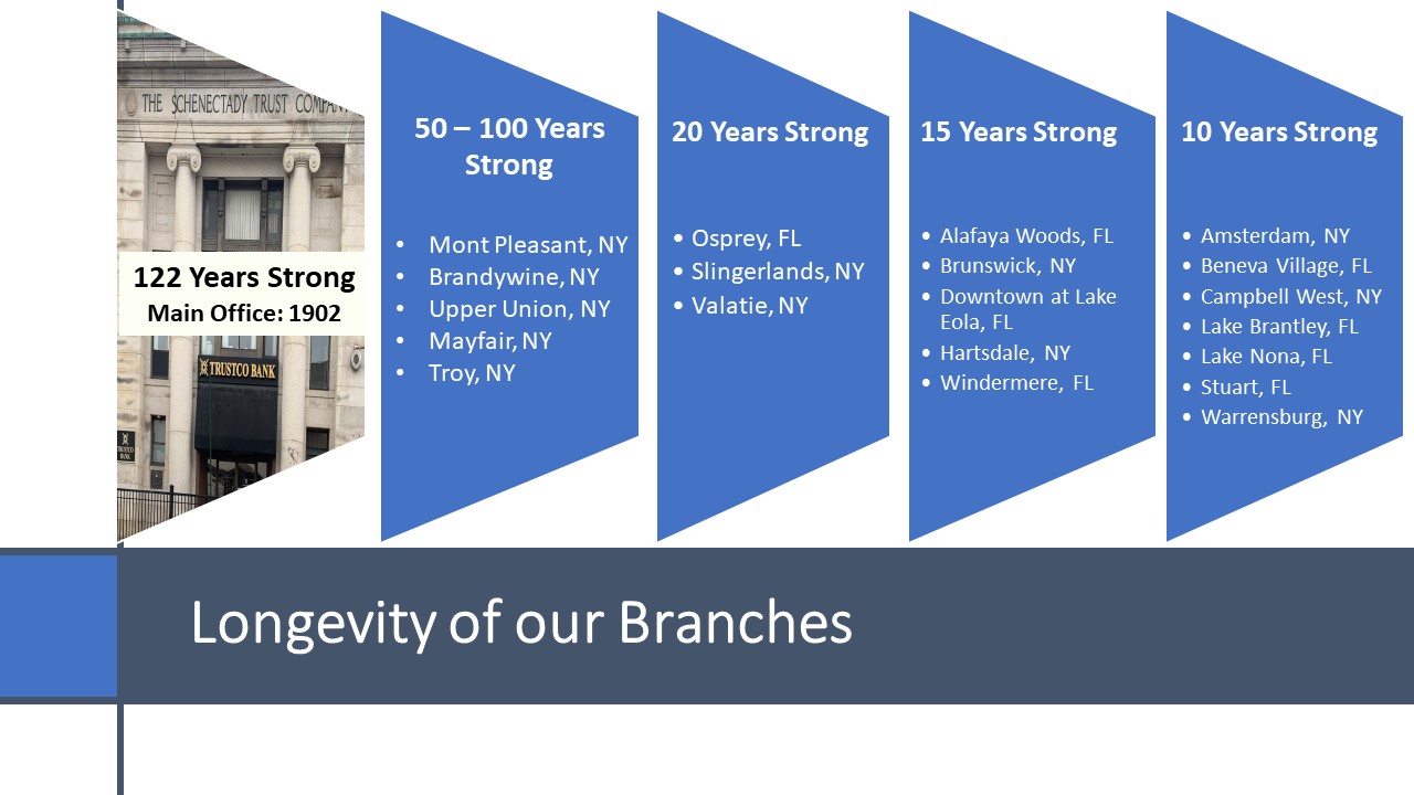 Longevity of our Branches  Mont Pleasant, NY  Brandywine, NY  Upper Union, NY  Mayfair, NY  Troy, NY  122 Years Strong  Main Office: 1902