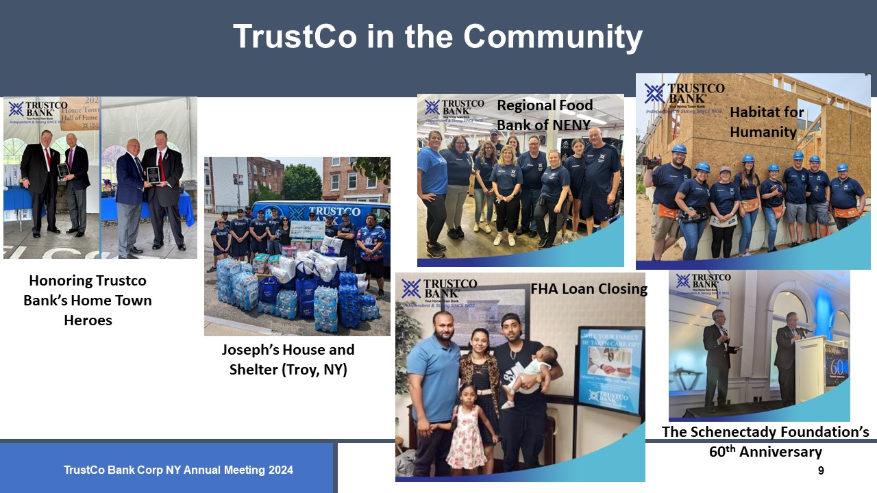 TrustCo in the Community  TrustCo Bank Corp NY Annual Meeting 2024  9  The Schenectady Foundation’s 60th Anniversary   Honoring Trustco Bank’s Home Town Heroes  Regional Food Bank of NENY  FHA Loan Closing  Joseph’s House and Shelter (Troy, NY)  Habitat for Humanity