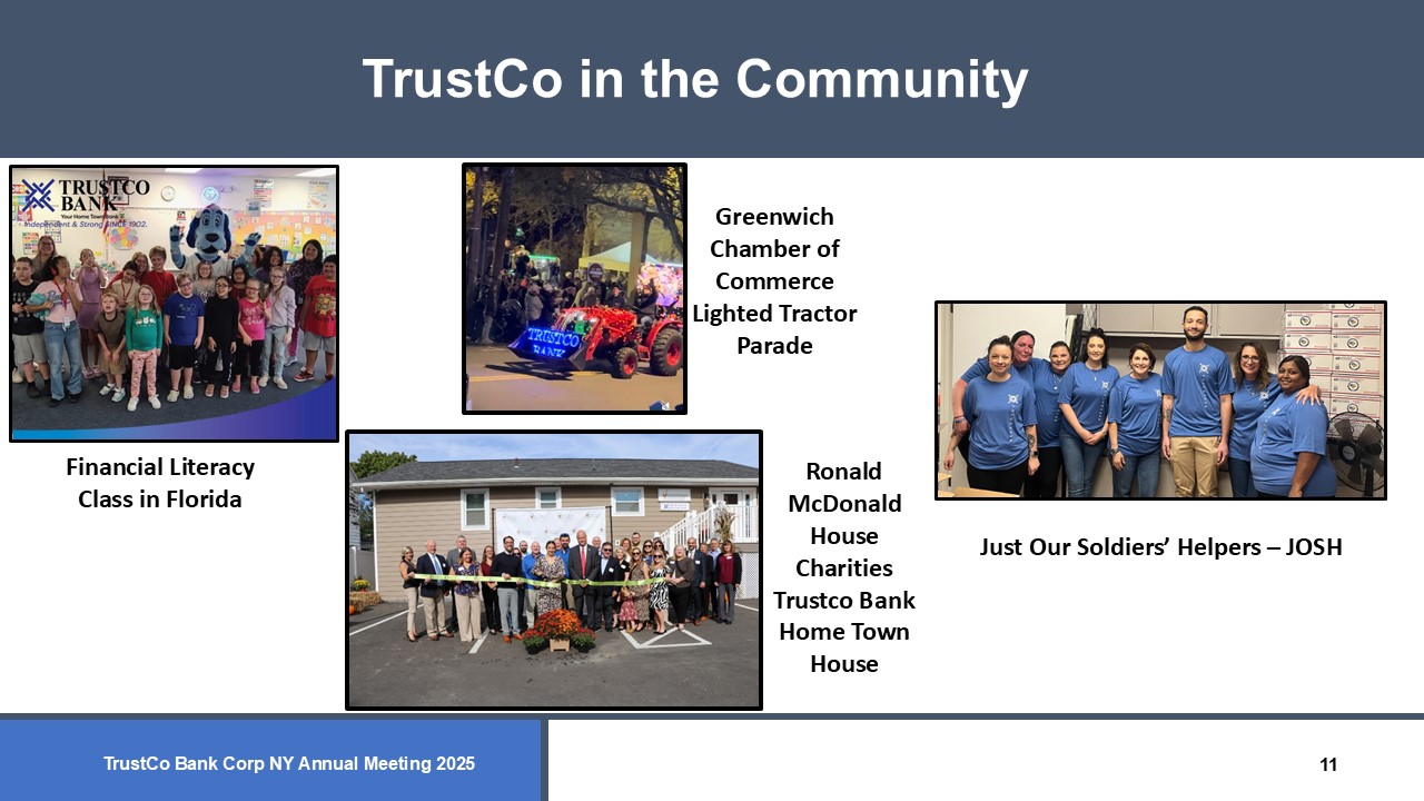 TrustCo in the Community  TrustCo Bank Corp NY Annual Meeting 2025  11  Financial Literacy Class in Florida  Just Our Soldiers’ Helpers – JOSH  Greenwich Chamber of Commerce   Lighted Tractor Parade  Ronald McDonald House Charities Trustco Bank Home Town House
