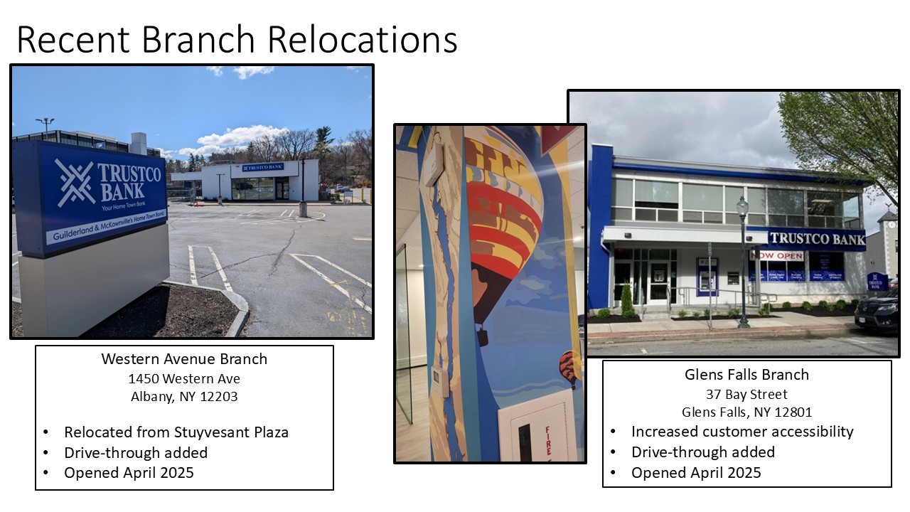 Recent Branch Relocations  Western Avenue Branch   1450 Western Ave  Albany, NY 12203  Relocated from Stuyvesant Plaza   Drive-through added  Opened April 2025  Glens Falls Branch   37 Bay Street  Glens Falls, NY 12801  Increased customer accessibility   Drive-through added  Opened April 2025