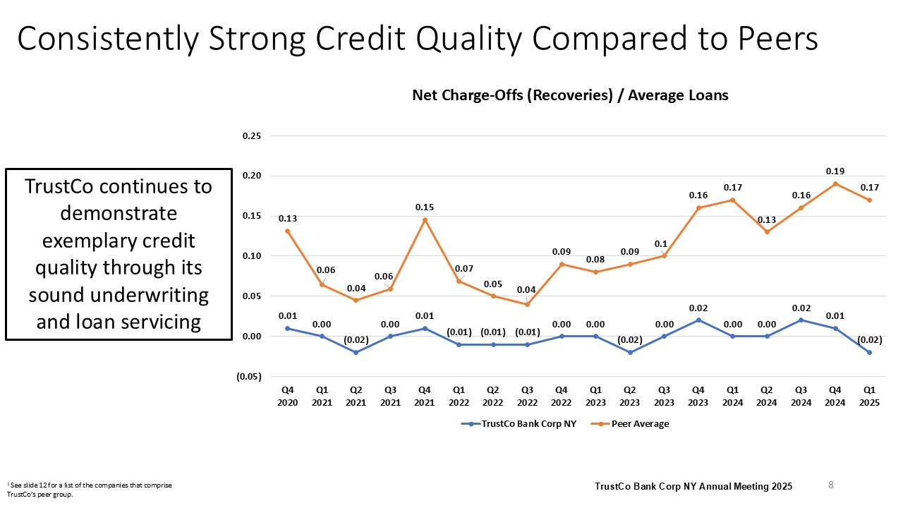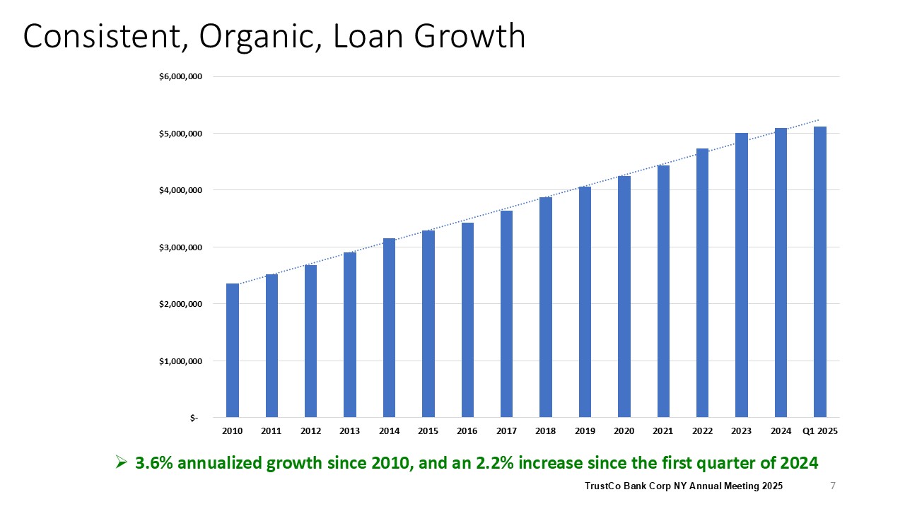 Consistent, Organic, Loan Growth  7  3.6% annualized growth since 2010, and an 2.2% increase since the first quarter of 2024  TrustCo Bank Corp NY Annual Meeting 2025