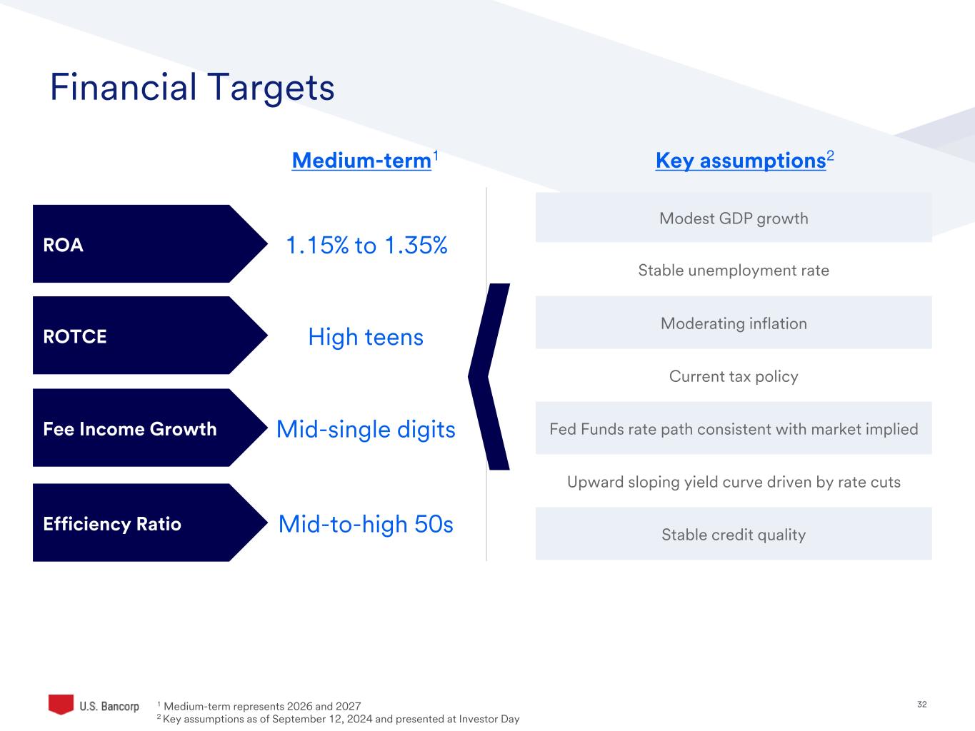 32©2025 U.S. Bank | Confidential Financial Targets ROA ROTCE Fee Income Growth Efficiency Ratio 1.15% to 1.35% High teens Mid-single digits Mid-to-high 50s Medium-term1 Key assumptions2 Modest GDP growth Stable unemployment rate Moderating inflation Current tax policy Fed Funds rate path consistent with market implied Upward sloping yield curve driven by rate cuts Stable credit quality 1 Medium-term represents 2026 and 2027 2 Key assumptions as of September 12, 2024 and presented at Investor Day