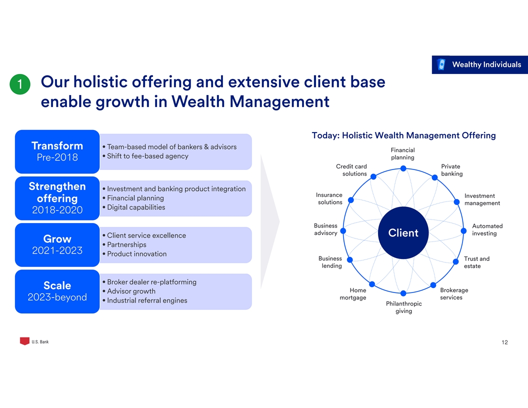 Deepening client relationships, product innovation, and expanding into new markets will drive future success Deepen Client Bolster Product Expand to New Base Capabilities Markets U.S. Bank 11