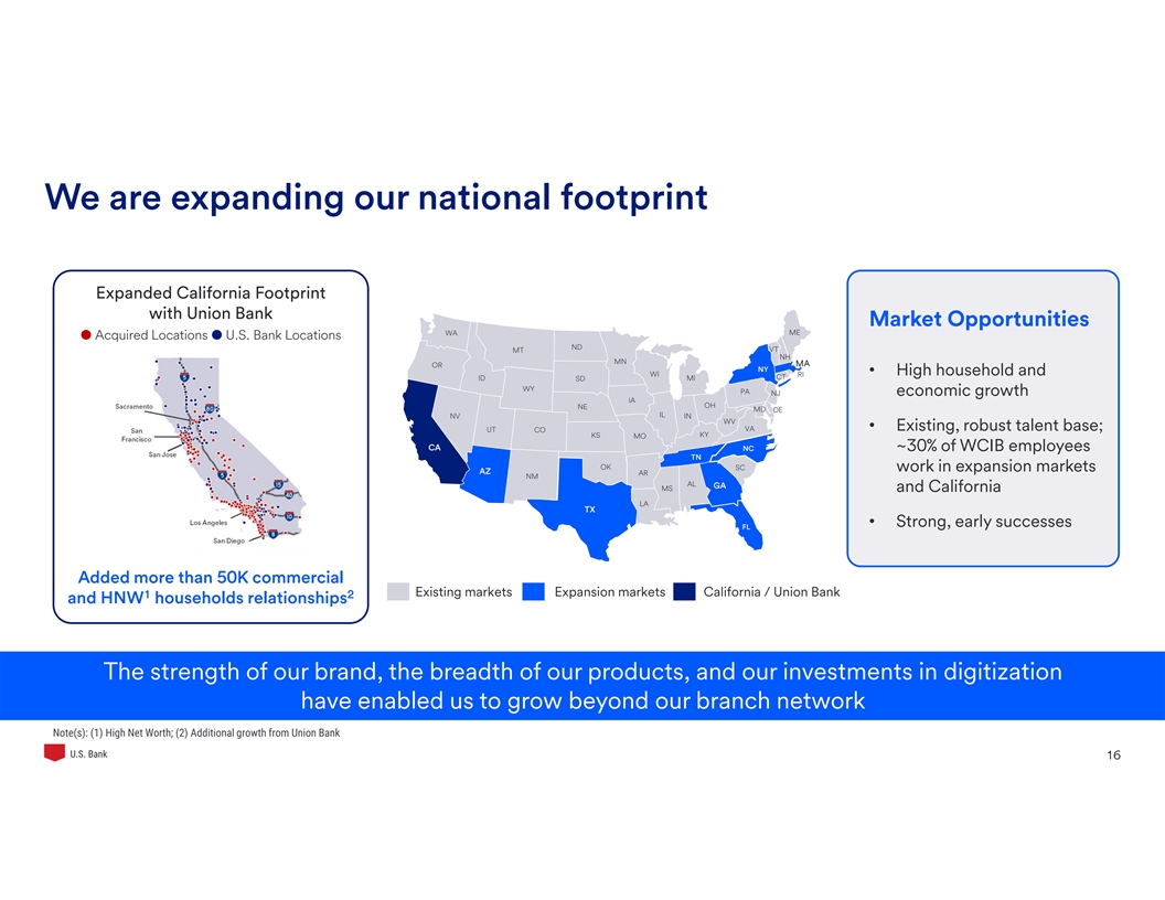 Focused on delivering innovative products N Ne ext Generation xt Generation Re Rea al l- -t ti im me e C Cu us st to od dy y Fo For re ei ig gn n E Ex xc ch ha an ng ge e 1 1 CL CLO O Data P Data Pr roduct oduct B Br rok oker er Dealer Dealer Platf Platfo orm rm M Mo odernization dernization Platf Platfo orm rm Data S Data St trat rate eg gi ies and es and C Co ommodit mmodity y T Tr rading ading L Lu ux xe embour mbourg g Office Office I Im mpact Finance pact Finance 2 2 API API Note(s): (1) CLO stands for Collateralized Loan Obligation; (2) API stands for Application Programming Interface U.S. Bank 15