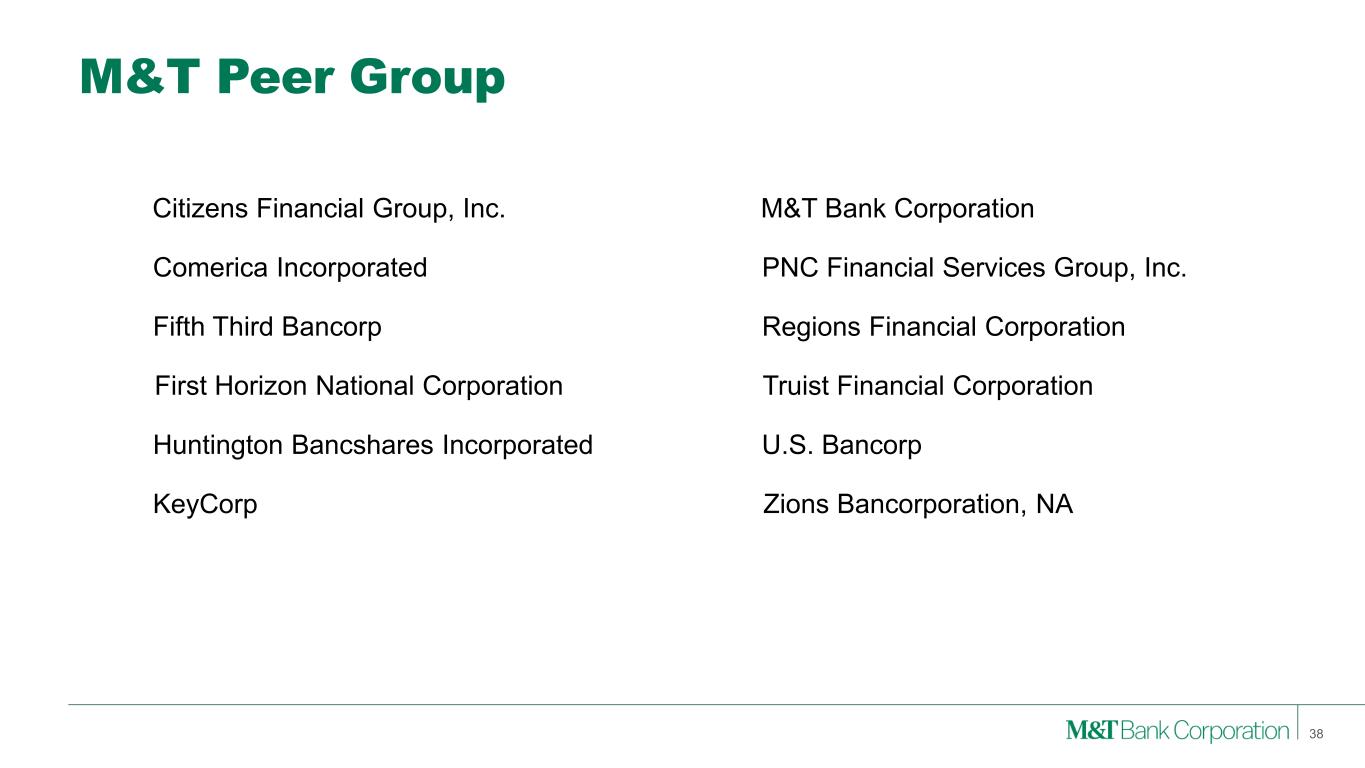 M&T Peer Group PNC Financial Services Group, Inc.Comerica Incorporated Regions Financial CorporationFifth Third Bancorp Huntington Bancshares Incorporated Zions Bancorporation, NAKeyCorp Truist Financial Corporation U.S. Bancorp M&T Bank CorporationCitizens Financial Group, Inc. First Horizon National Corporation 38