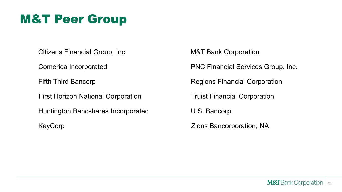 M&T Peer Group PNC Financial Services Group, Inc.Comerica Incorporated Regions Financial CorporationFifth Third Bancorp Huntington Bancshares Incorporated Zions Bancorporation, NAKeyCorp Truist Financial Corporation U.S. Bancorp M&T Bank CorporationCitizens Financial Group, Inc. First Horizon National Corporation 26