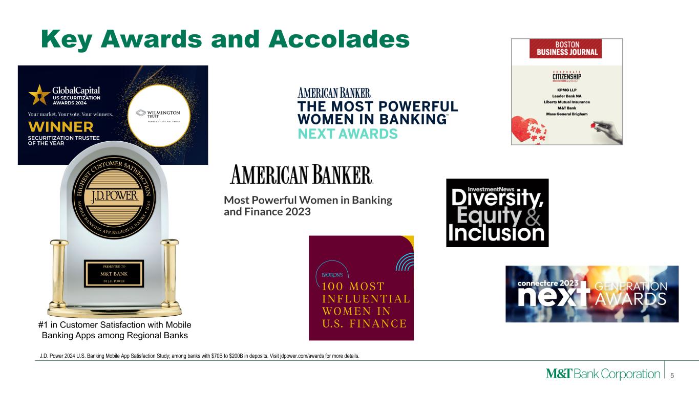 5 J.D. Power 2024 U.S. Banking Mobile App Satisfaction Study; among banks with $70B to $200B in deposits. Visit jdpower.com/awards for more details. Key Awards and Accolades #1 in Customer Satisfaction with Mobile Banking Apps among Regional Banks