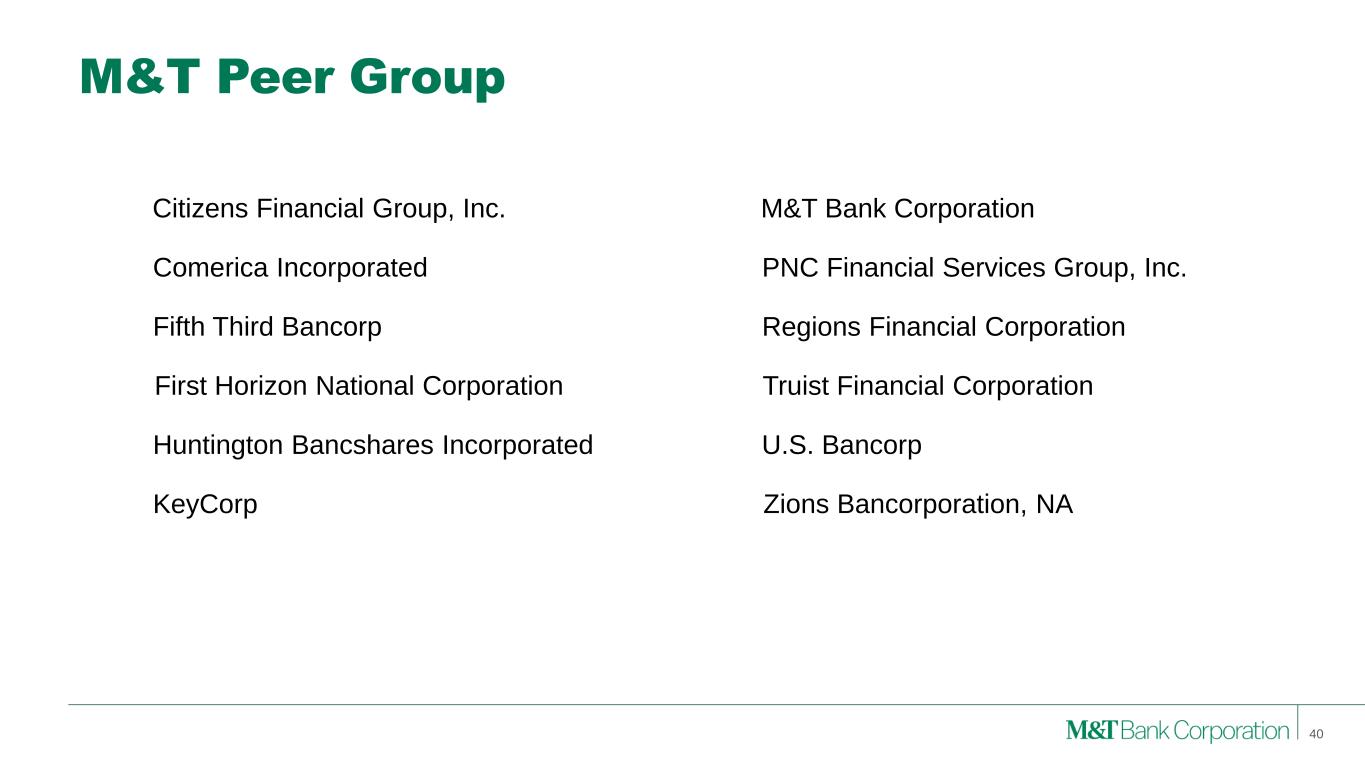 M&T Peer Group PNC Financial Services Group, Inc.Comerica Incorporated Regions Financial CorporationFifth Third Bancorp Huntington Bancshares Incorporated Zions Bancorporation, NAKeyCorp Truist Financial Corporation U.S. Bancorp M&T Bank CorporationCitizens Financial Group, Inc. First Horizon National Corporation 40