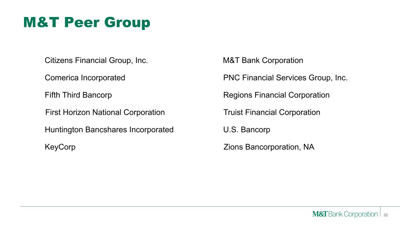 M&T Peer Group PNC Financial Services Group, Inc.Comerica Incorporated Regions Financial CorporationFifth Third Bancorp Huntington Bancshares Incorporated Zions Bancorporation, NAKeyCorp Truist Financial Corporation U.S. Bancorp M&T Bank CorporationCitizens Financial Group, Inc. First Horizon National Corporation 32