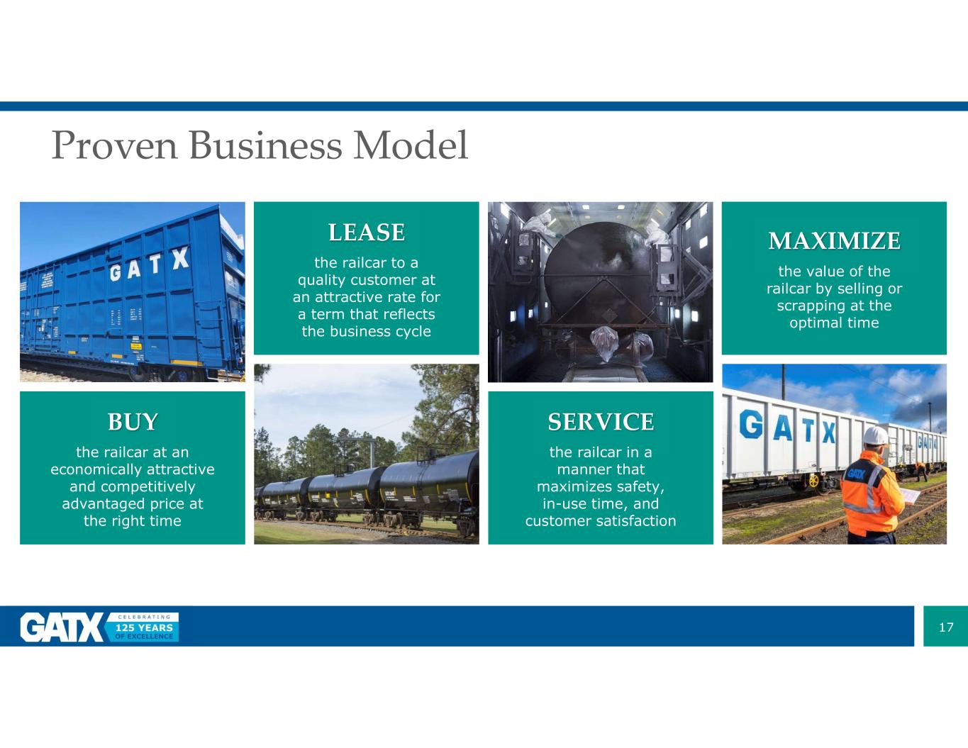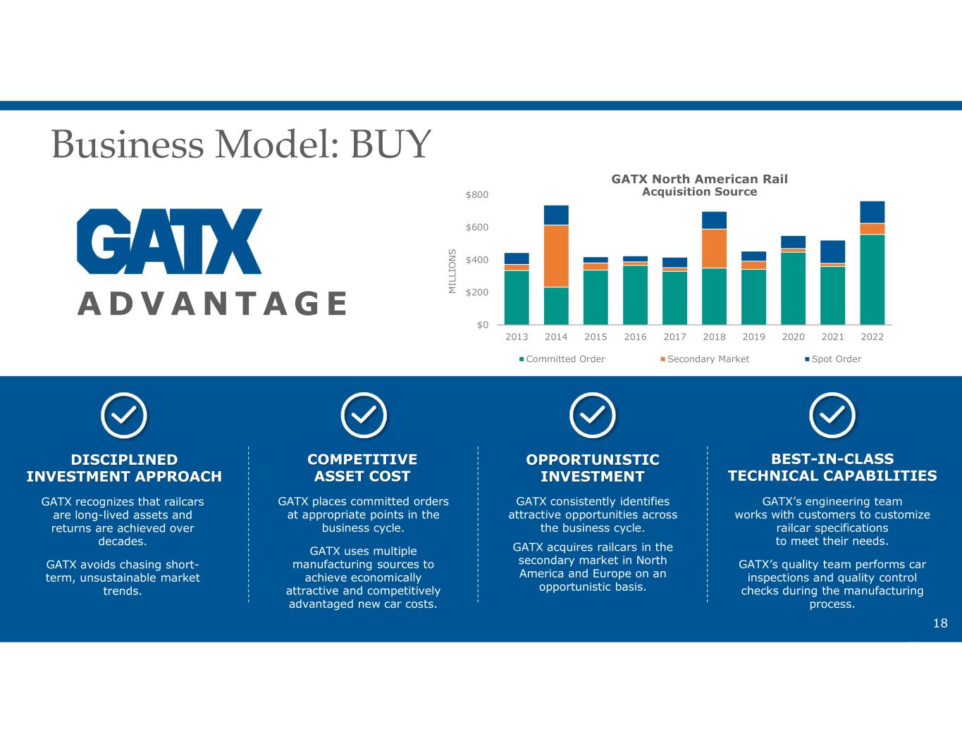17 BUY the railcar at an economically attractive and competitively advantaged price at the right time LEASE the railcar to a quality customer at an attractive rate for a term that reflects the business cycle SERVICE the railcar in a manner that maximizes safety, in-use time, and customer satisfaction MAXIMIZE the value of the railcar by selling or scrapping at the optimal time Proven Business Model