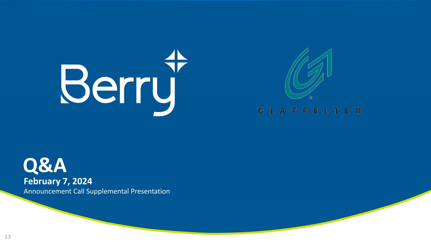 Q&A February 7, 2024 Announcement Call Supplemental Presentation 13