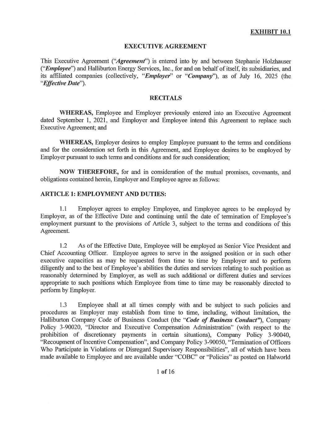 EX-10.1 2 exhibit101executiveagref.htm EX-10.1 EMPLOYMENT AGREEMENT exhibit101executiveagref