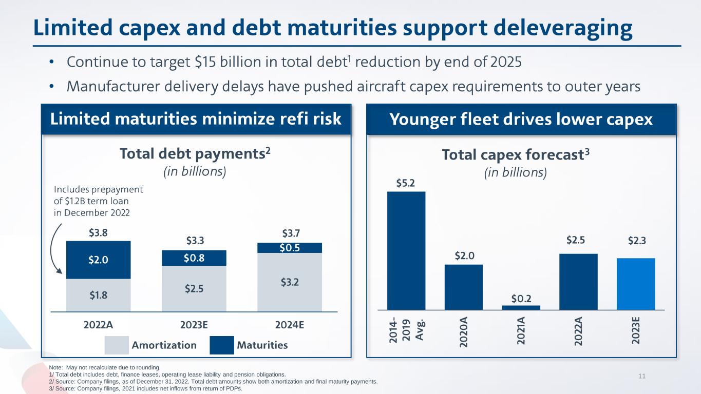 Note: May not recalculate due to rounding. 1/ Total debt includes debt, finance leases, operating lease liability and pension obligations. 2/ Source: Company filings, as of December 31, 2022. Total debt amounts show both amortization and final maturity payments. 3/ Source: Company filings, 2021 includes net inflows from return of PDPs. 11 • •