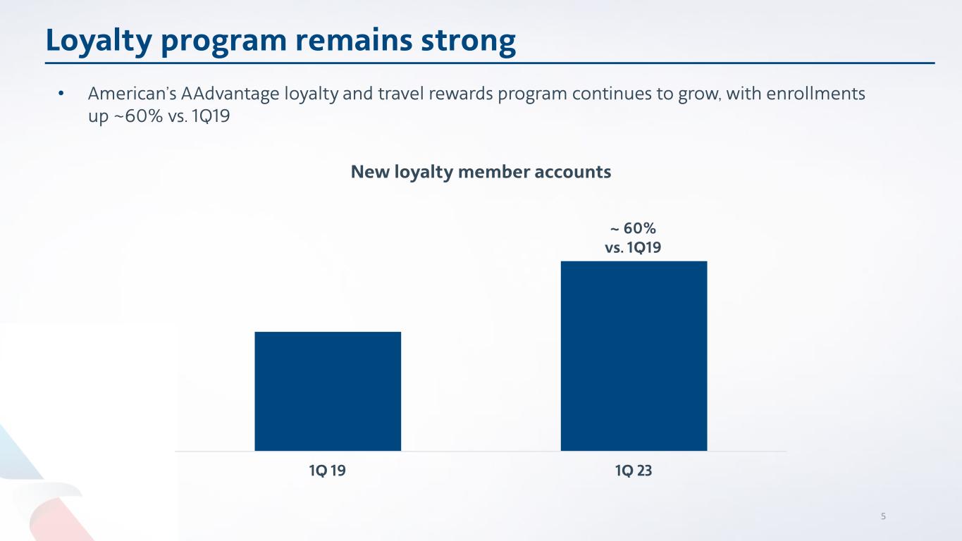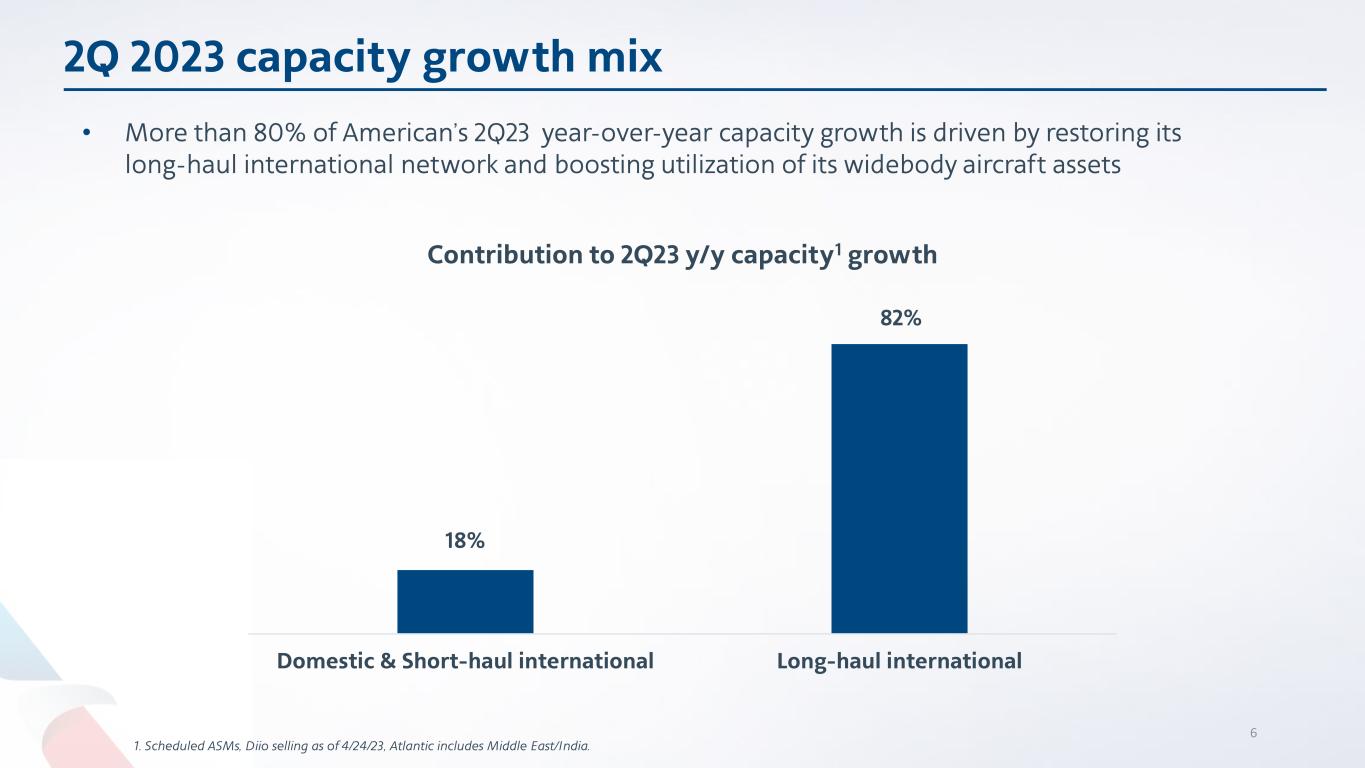 1Q 19 1Q 23 New loyalty member accounts Loyalty program remains strong 5 • American’s AAdvantage loyalty and travel rewards program continues to grow, with enrollments up ~60% vs. 1Q19 ~ 60% vs. 1Q19