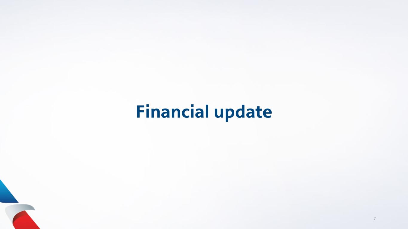 2Q 2023 capacity growth mix 6 • More than 80% of American’s 2Q23 year-over-year capacity growth is driven by restoring its long-haul international network and boosting utilization of its widebody aircraft assets 1. Scheduled ASMs, Diio selling as of 4/24/23, Atlantic includes Middle East/India. Domestic & Short-haul international Long-haul international Contribution to 2Q23 y/y capacity1 growth 18% 82%