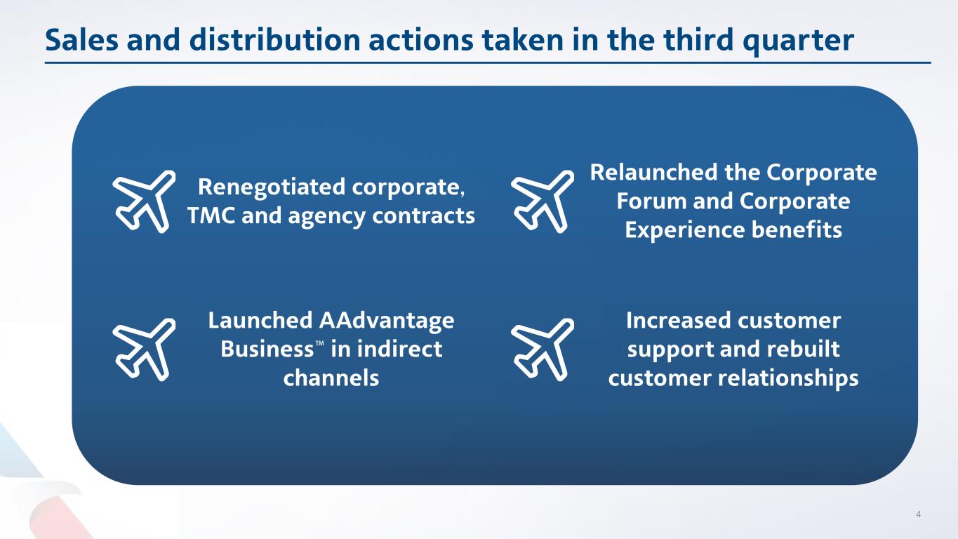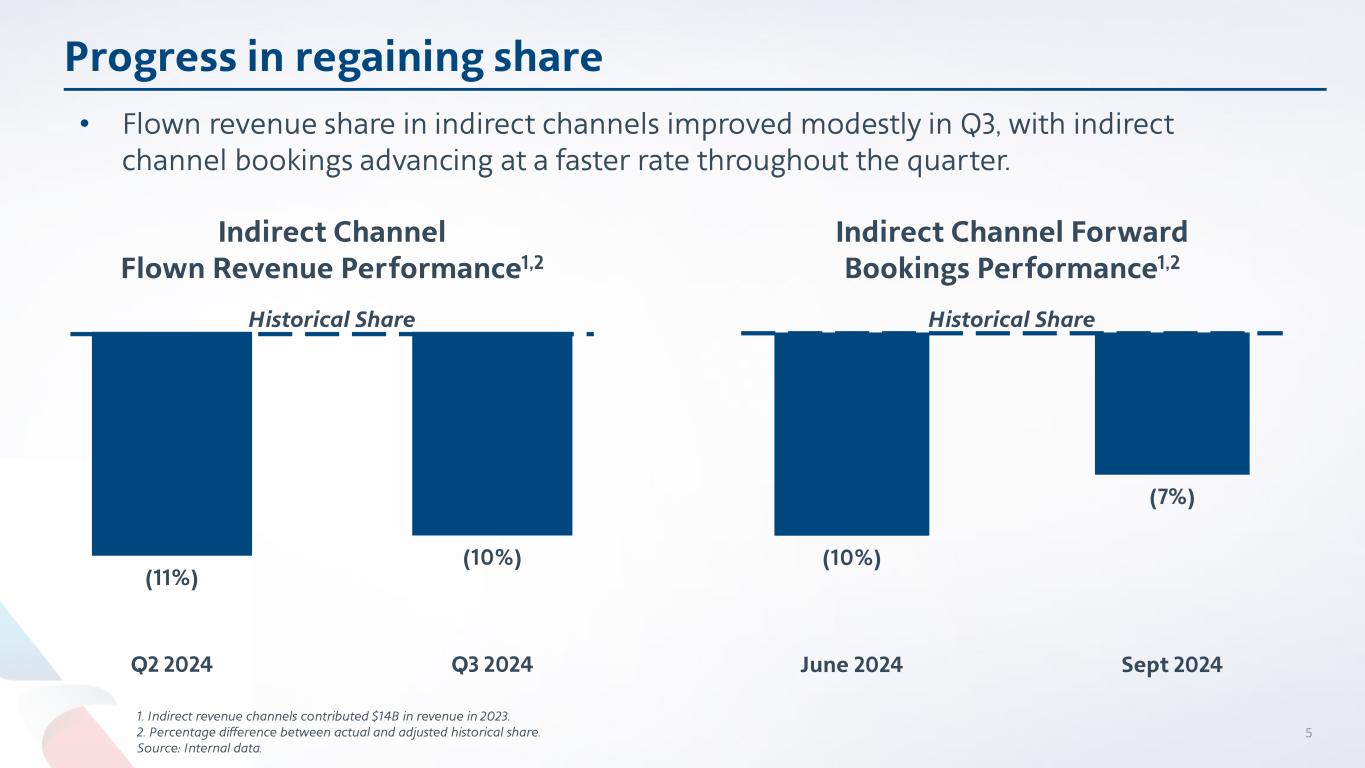 Sales and distribution actions taken in the third quarter 4 Renegotiated corporate, TMC and agency contracts Relaunched the Corporate Forum and Corporate Experience benefits Launched AAdvantage Business in indirect channels Increased customer support and rebuilt customer relationships